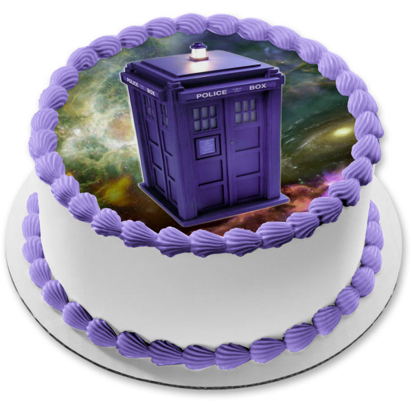 Decorate a Cake with this Doctor Who themed Edible Cake Topper Image featuring the Tardis floating in Space!
