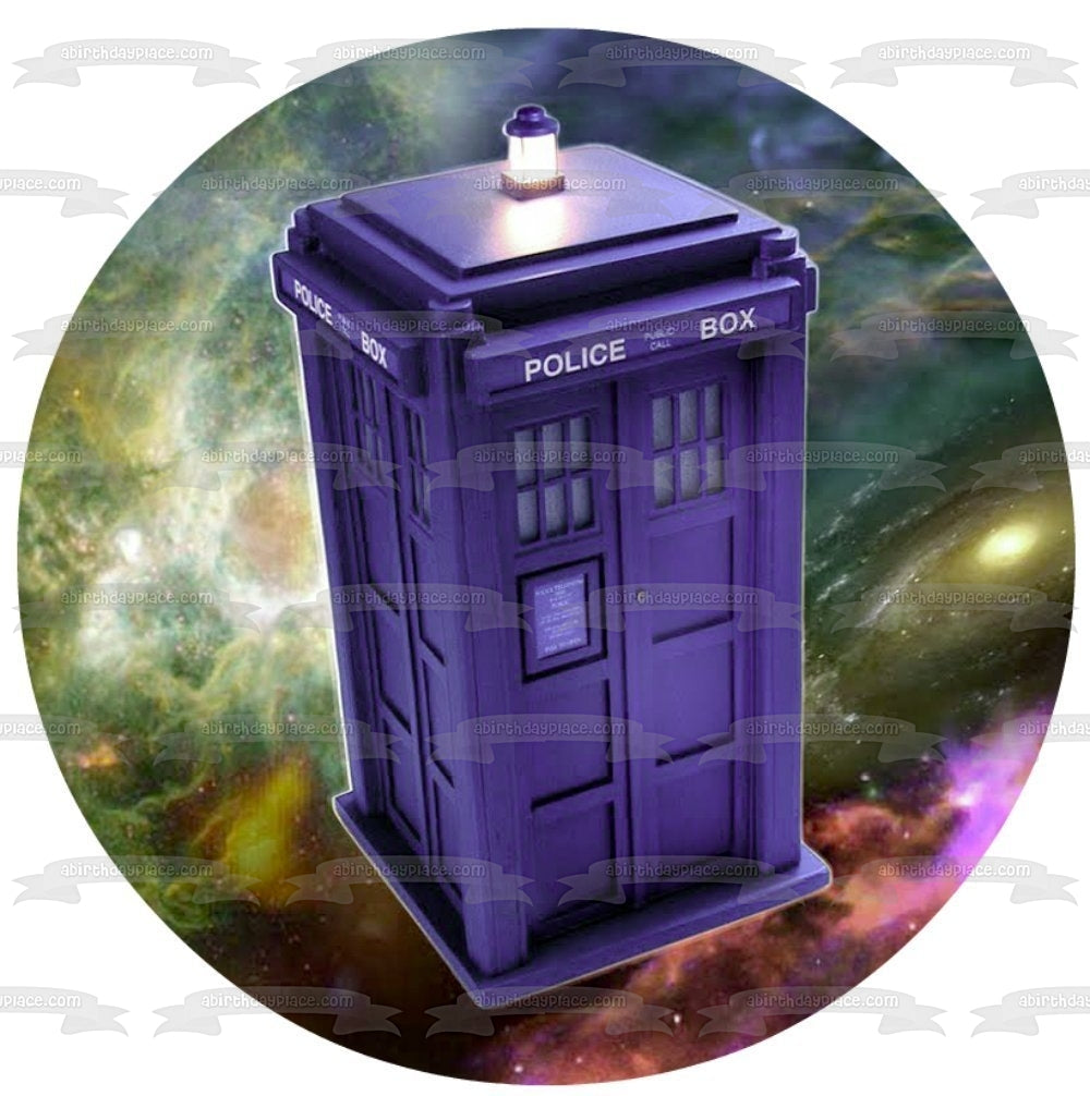 Doctor Who Tardis Space Background Police Box Edible Cake Topper Image ABPID04661