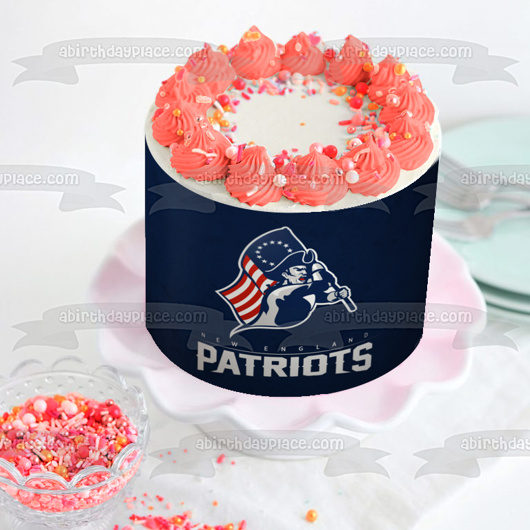 Decorate a Cake with this Professional Sports themed Edible Cake Topper Image featuring Artwork relating to the New England Patriots, a Professional American Football Team based in the Greater Boston region!