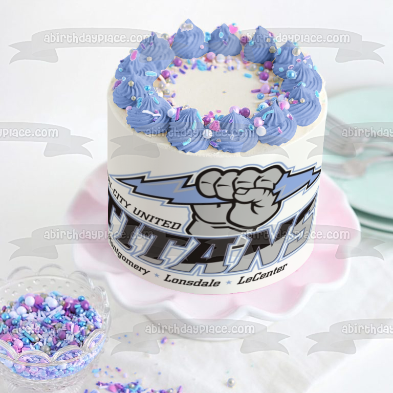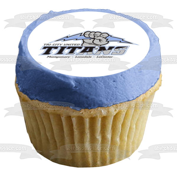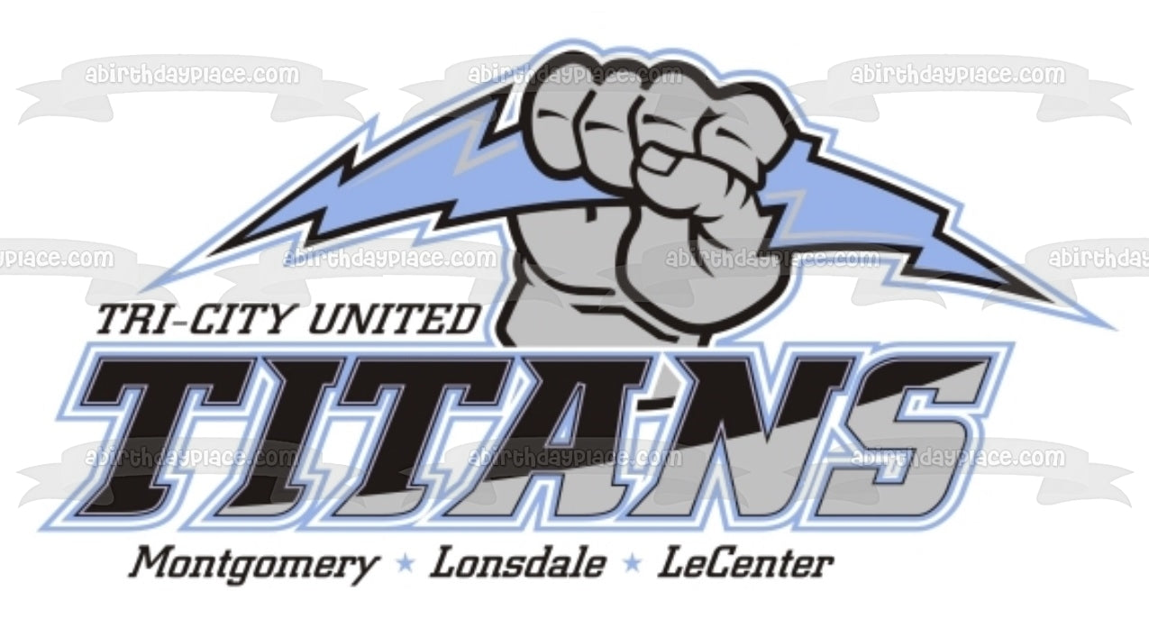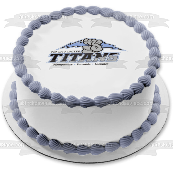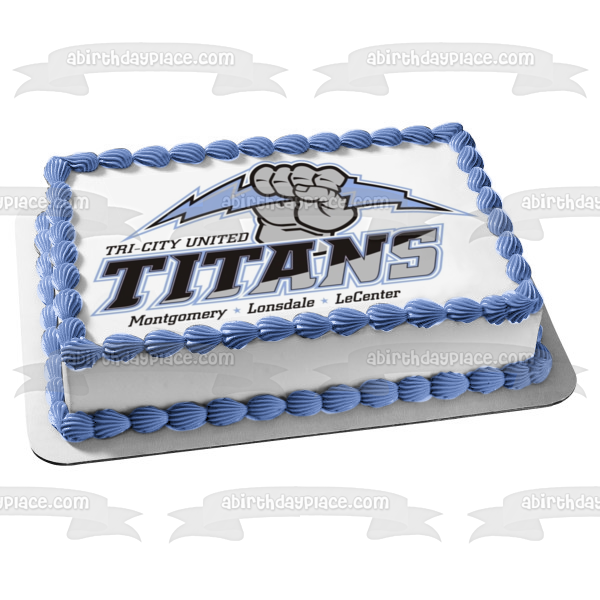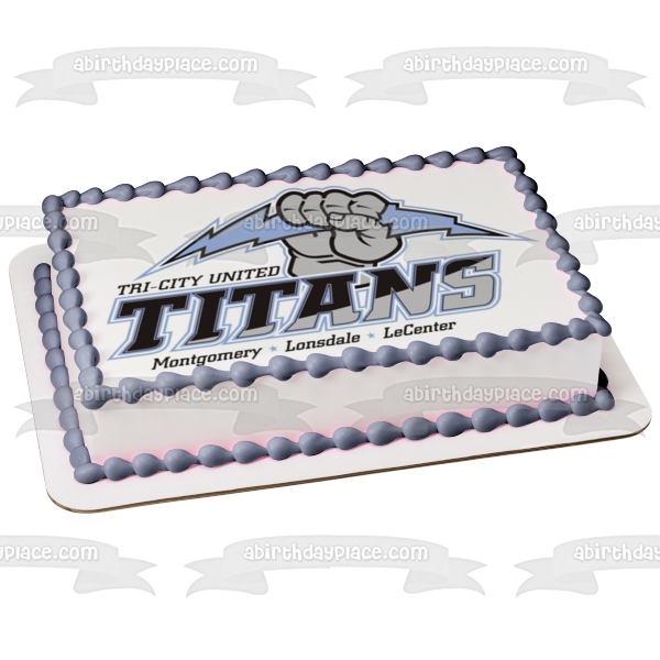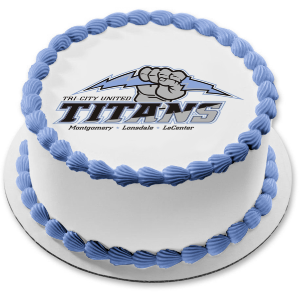Celebrate your day with this Tri City United themed Edible Cake Topper Image featuring the Titans Logo and Montgomery, Lonsdale and LeCenter!