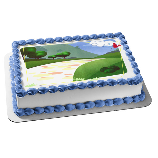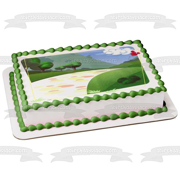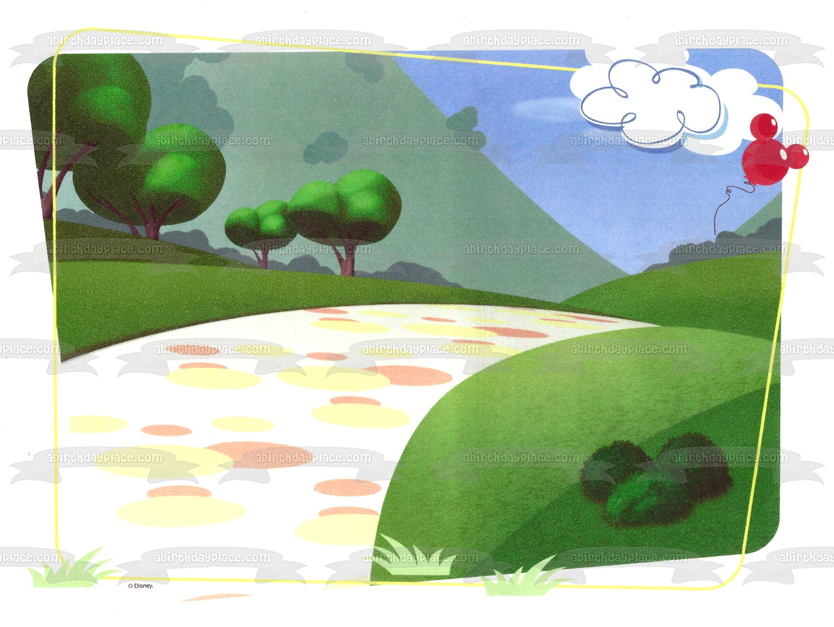 Celebrate your special event with this Edible Cake Topper Image featuring a Path from Mickey Mouse Clubhouse and a Red Mickey Mouse Head Balloon!