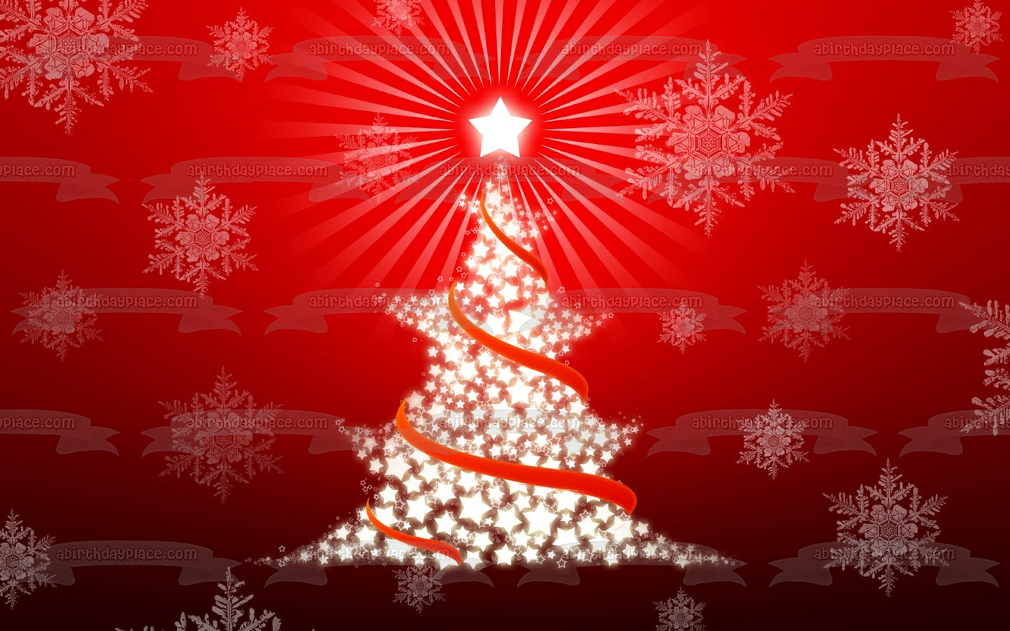 Merry Christmas White Star Tree Snowflakes with a Red Background Edible Cake Topper Image ABPID04765