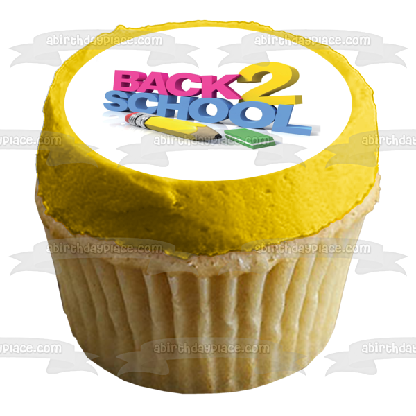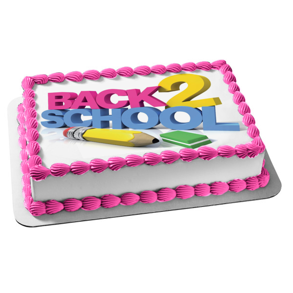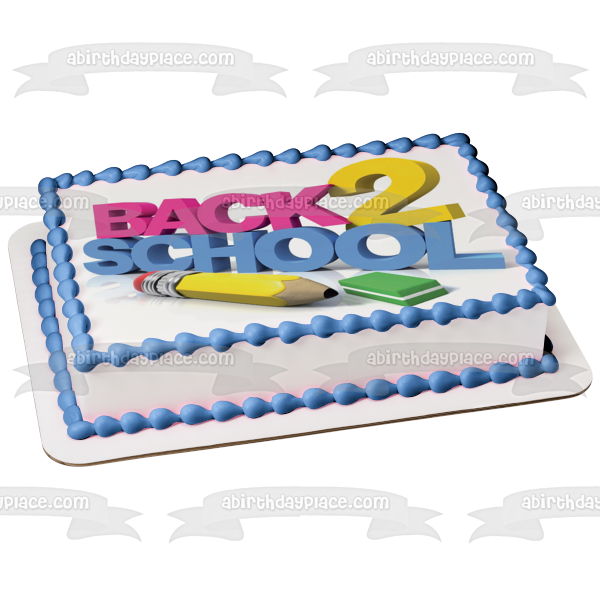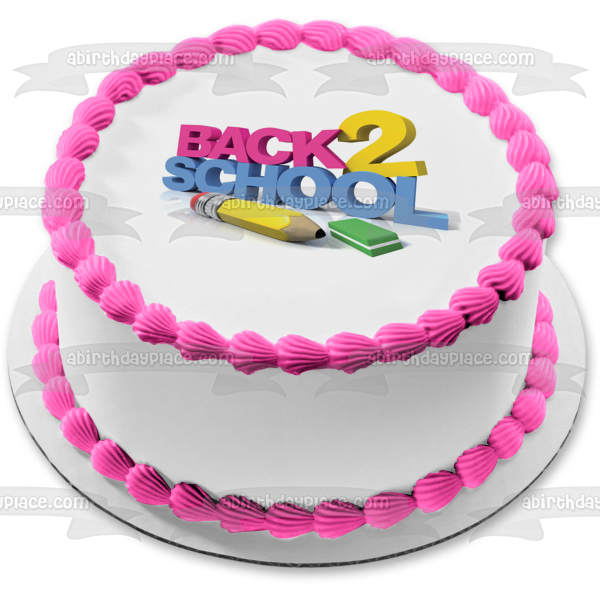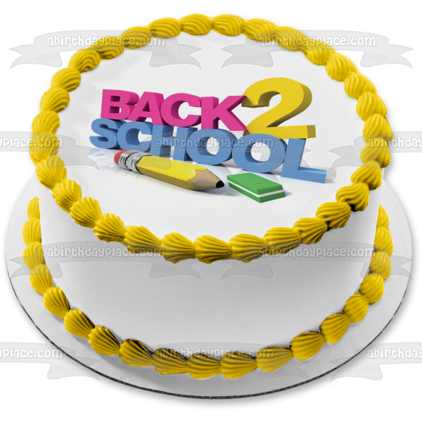 Celebrate going back to school with this Edible Cake Topper Image featuring A Pencil, Eraser and the words "Back 2 School"!