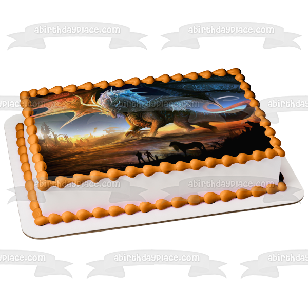 Celebrate your event with this Fantasy themed Edible Cake Topper Image featuring Dragons, Horses and People!