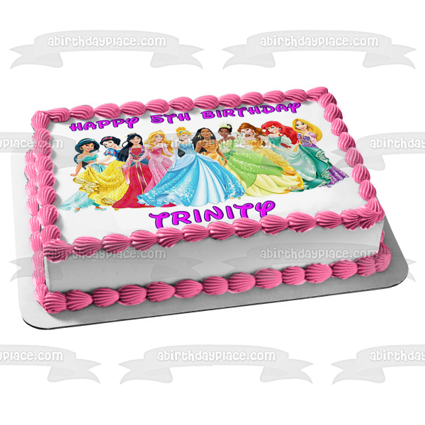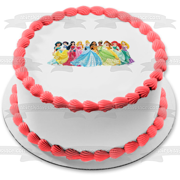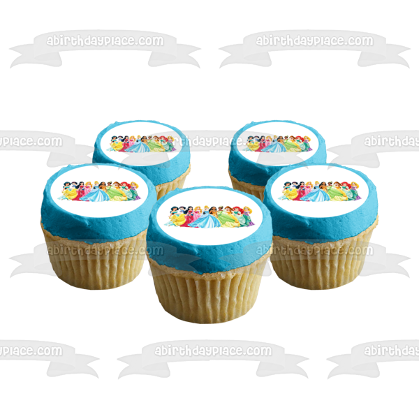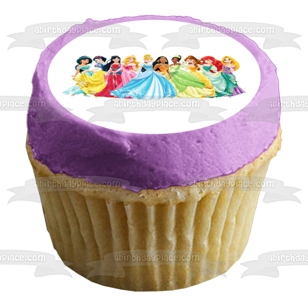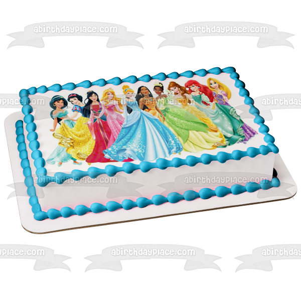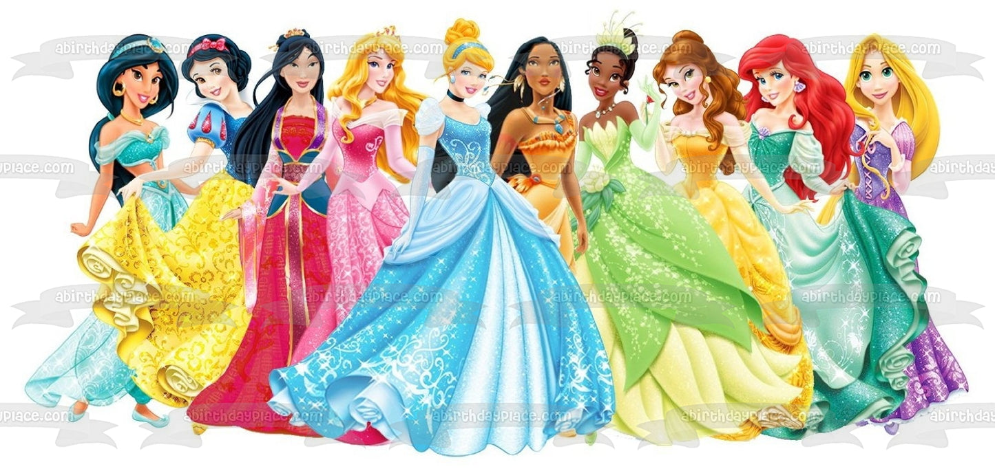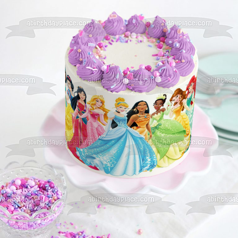 Celebrate your Princesses fan with this themed Edible Cake Topper Image featuring Ariel, Belle, Aurora, Mulan and Jasmine!