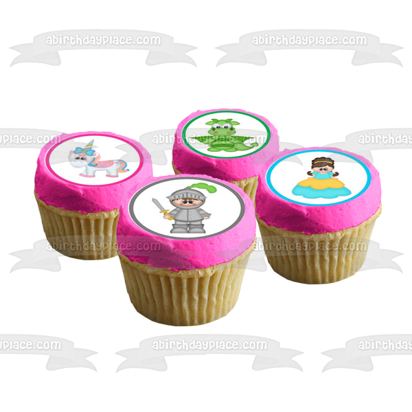Princess Green Dragon Knight and Unicorns Edible Cupcake Topper Images ABPID04889