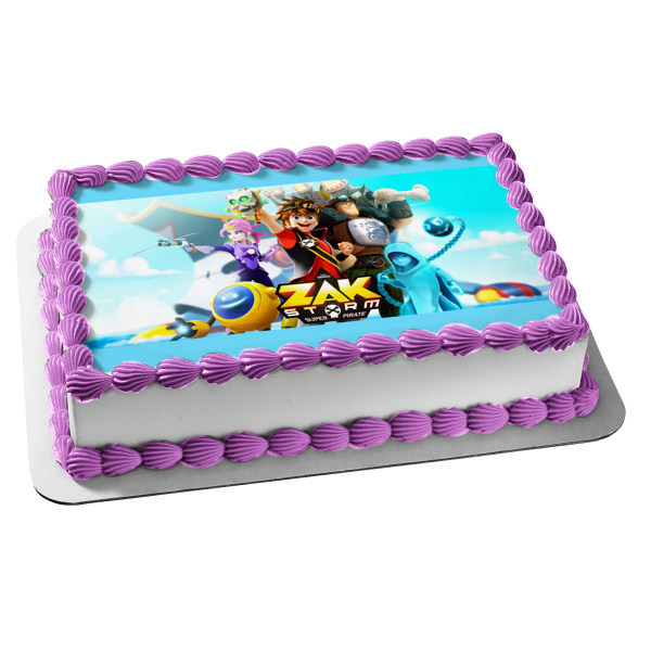 Celebrate your day with this Cartoon themed Edible Cake Topper Image featuring Zak Storm, Cece Lejune, Crogar and Clovis from Zak Storm Super Pirate!