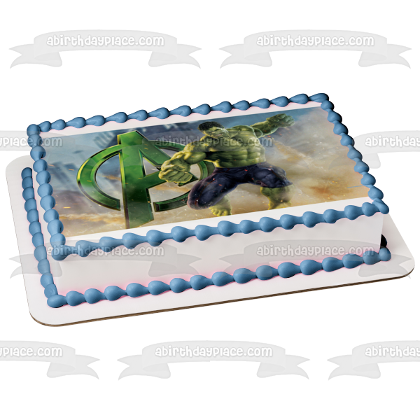 Celebrate your Superhero fan with this Edible Cake Topper Image featuring The Avengers Logo and The Hulk!