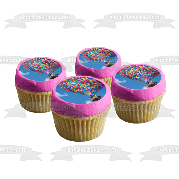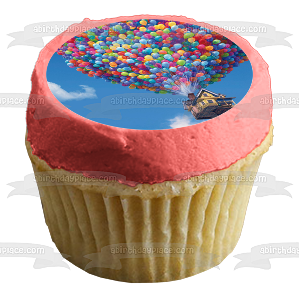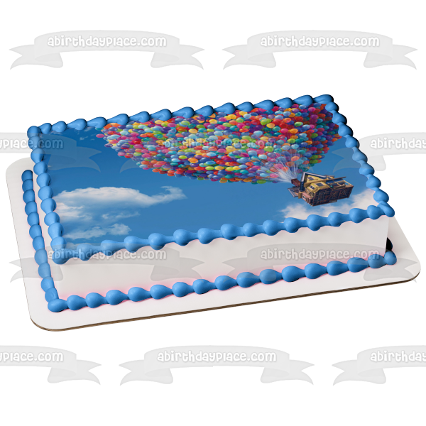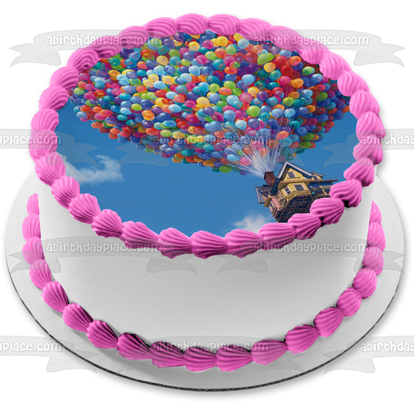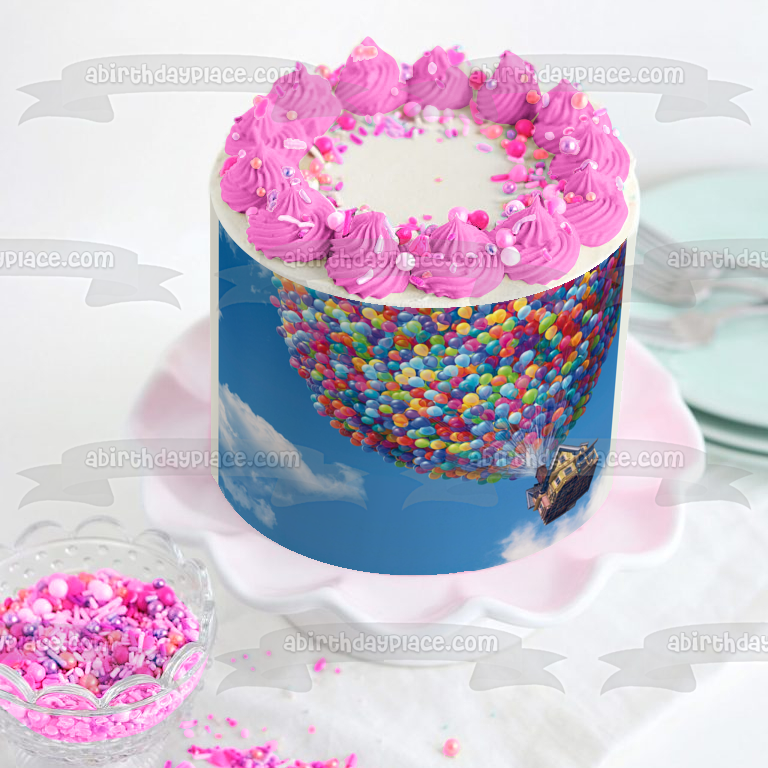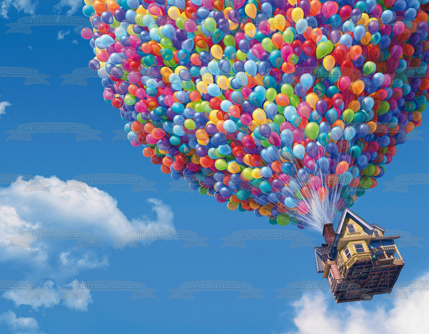 Celebrate your special occasion with this Edible Cake Topper Image featuring Up with a House and Balloons!