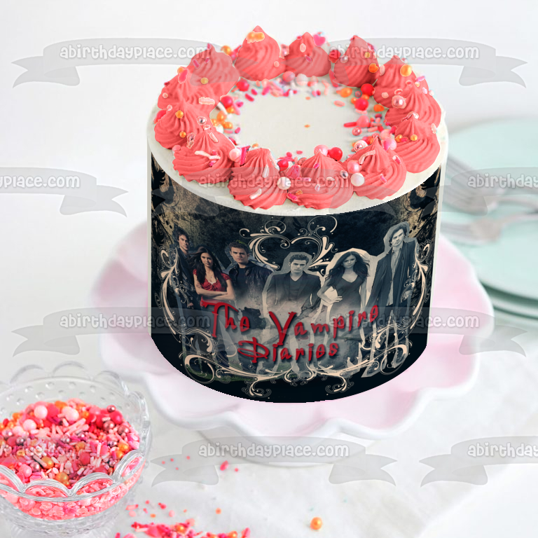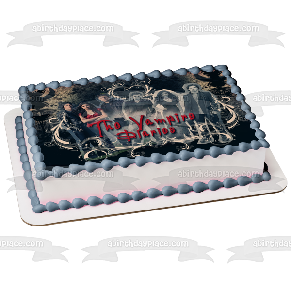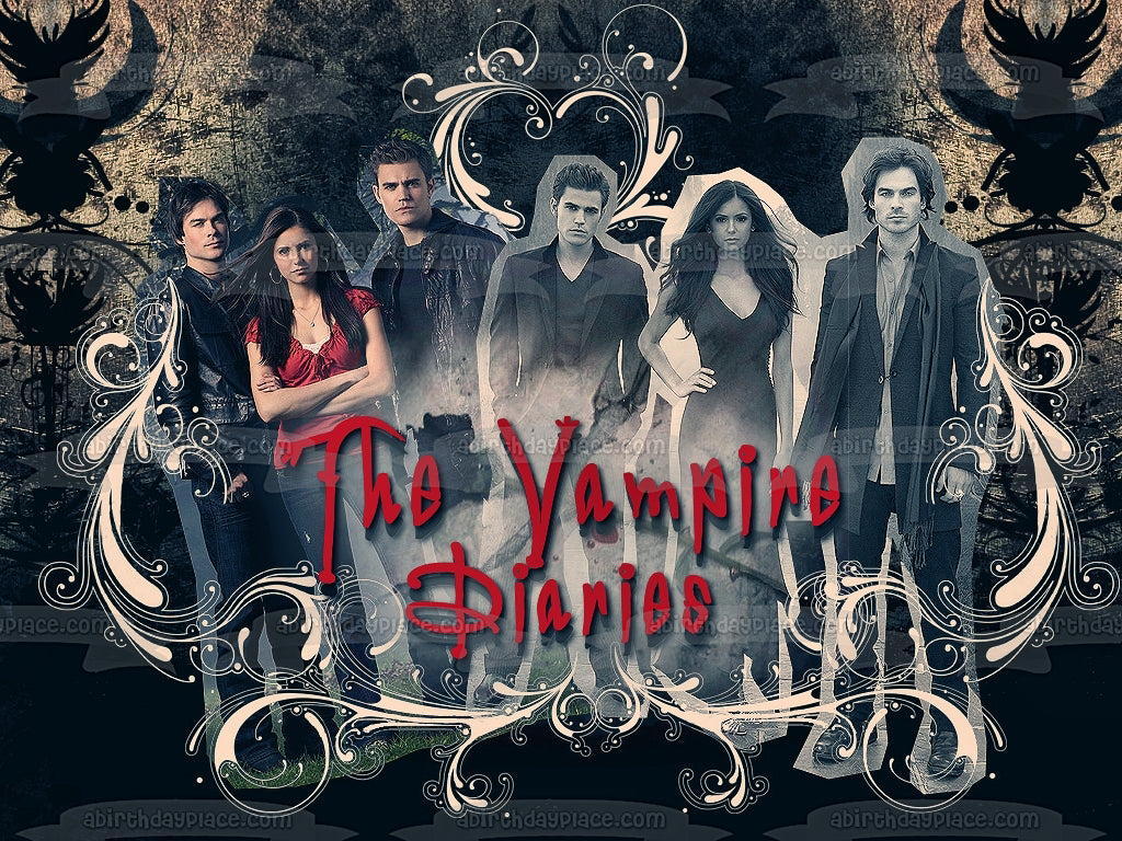 Celebrate your special event with this The Vampire Diaries themed Edible Cake Topper Image featuring Damon Salvatore, Katerina Petrova and Niklaus Mikaelson!