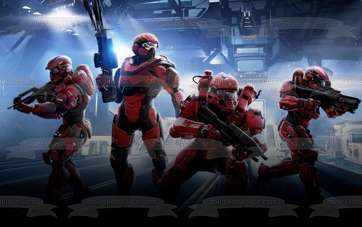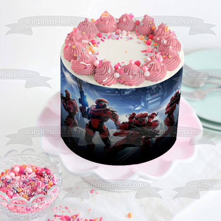 Decorate your cake with this Halo 5 Warzone themed Edible Cake Topper Image featuring Spartans!