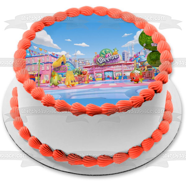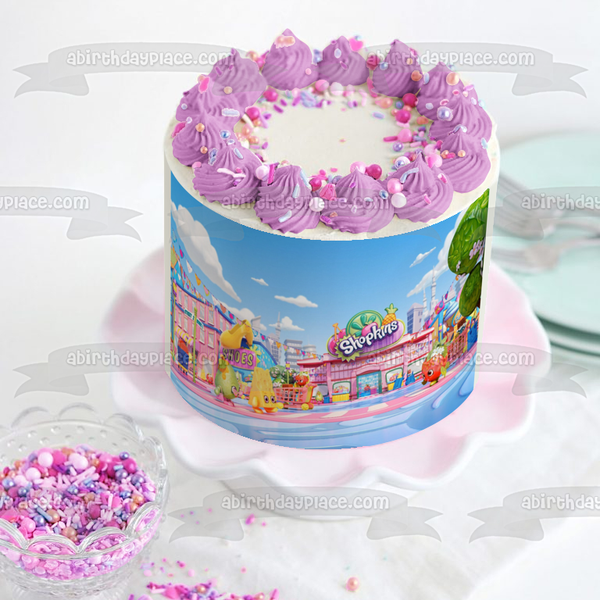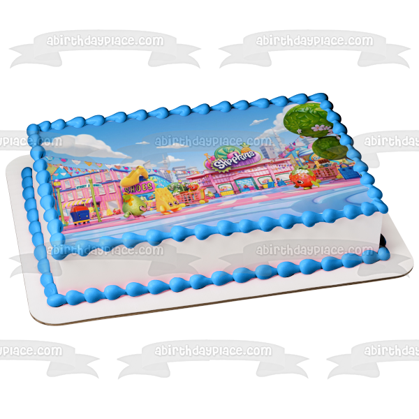 Decorate your cake with this Shopkins themed Edible Cake Topper Image featuring Apple Blossom and Strawberry Kiss!