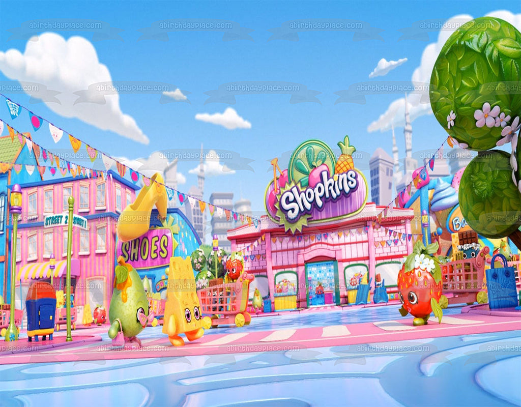 Shopkins Stores Apple Blossom and Strawberry Kiss Edible Cake Topper Image ABPID05229
