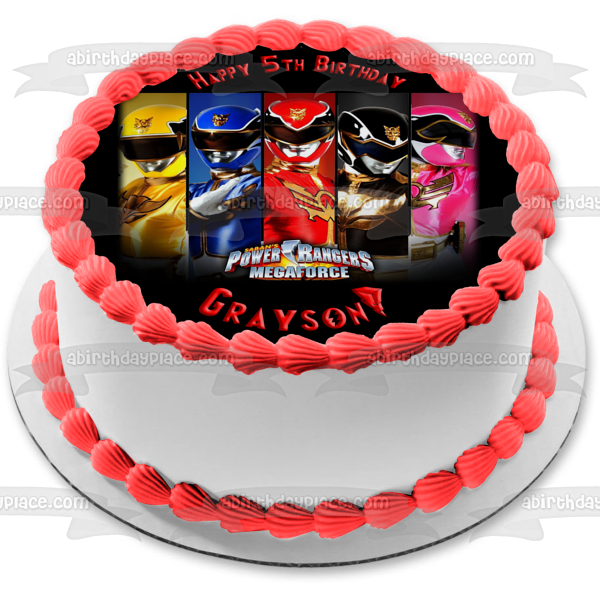 Decorate your cake with this Power Rangers Mega Force themed Edible Cake Topper Image featuring Jason, Zack, Billy, Trini and Kimberly!