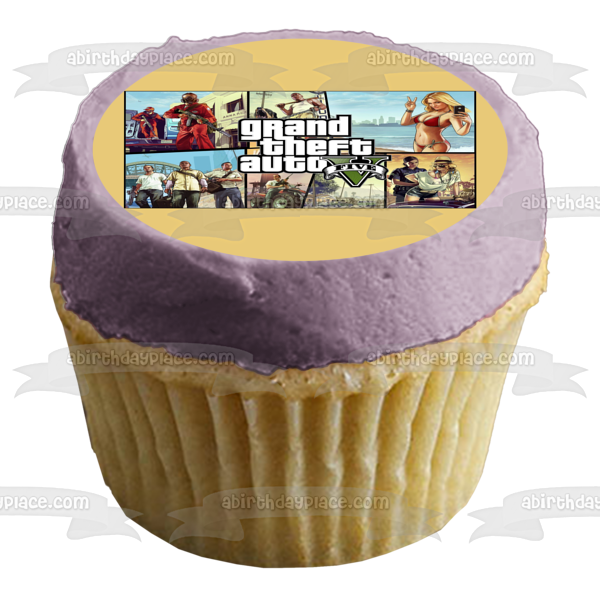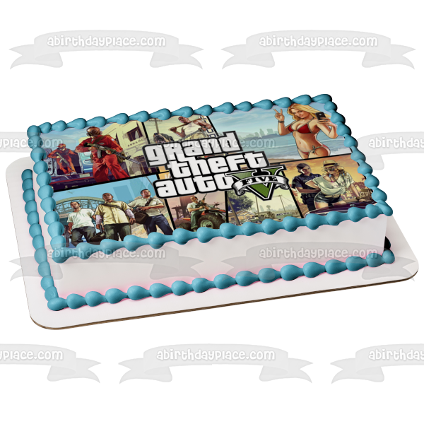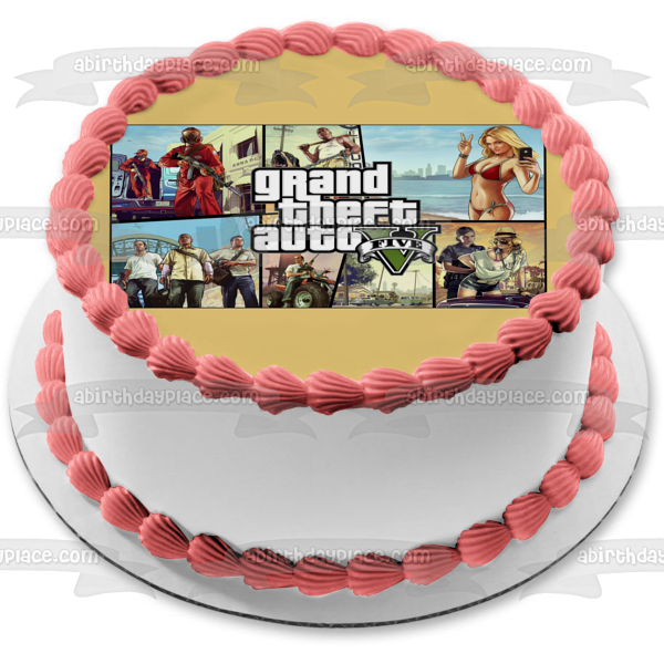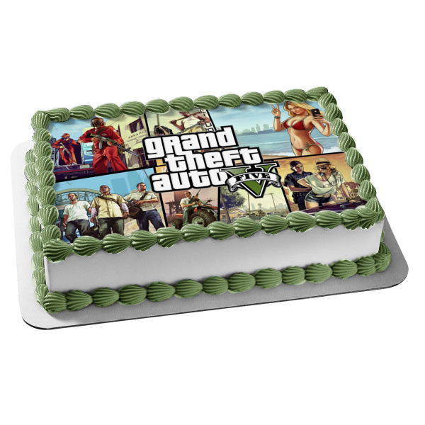 Celebrate your special occasion with this Grand Theft Auto 5 themed Edible Cake Topper Image featuring Franklin, Trevor and Michael!