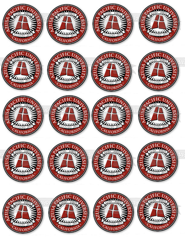 Celebrate your special day with these 24 Count AZUSA Pacific University Edible Cupcake Topper Images featuring the AZUSA Logo!
