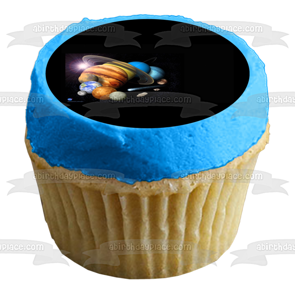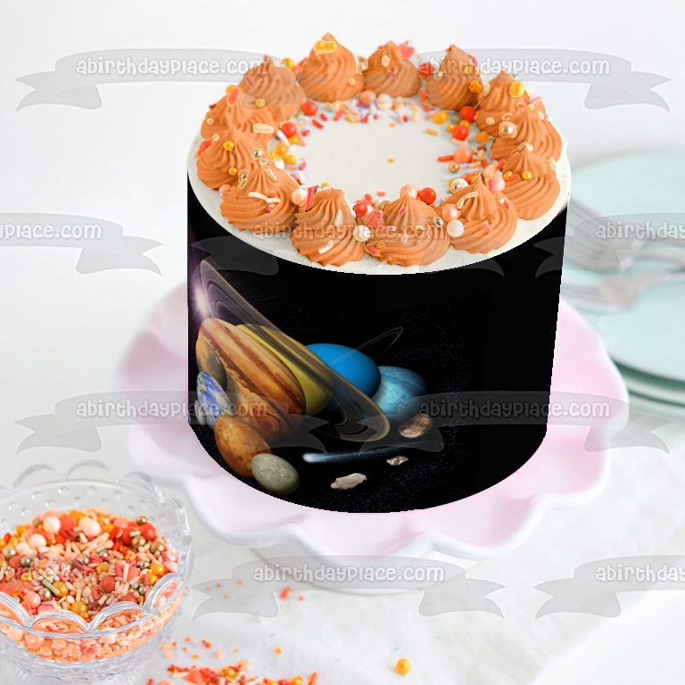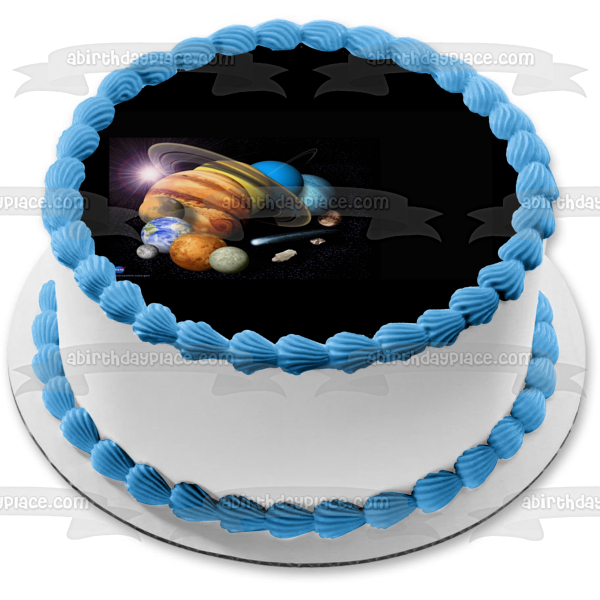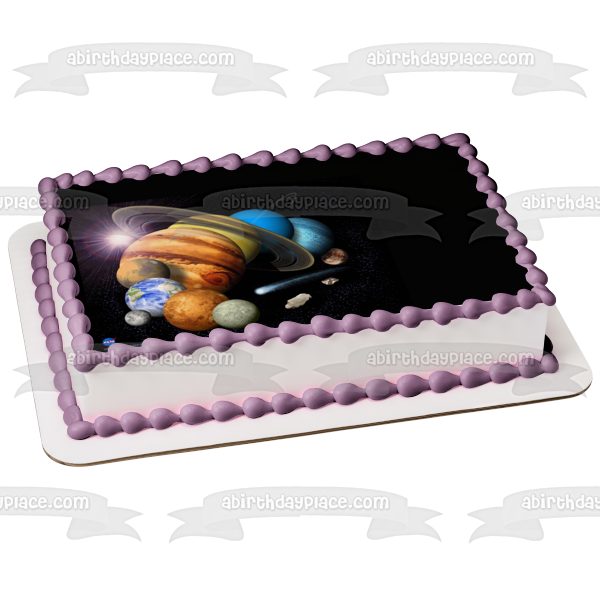 Decorate your cake with this Solar System themed Edible Cake Topper Image featuring the Planets, Sun and Moon!