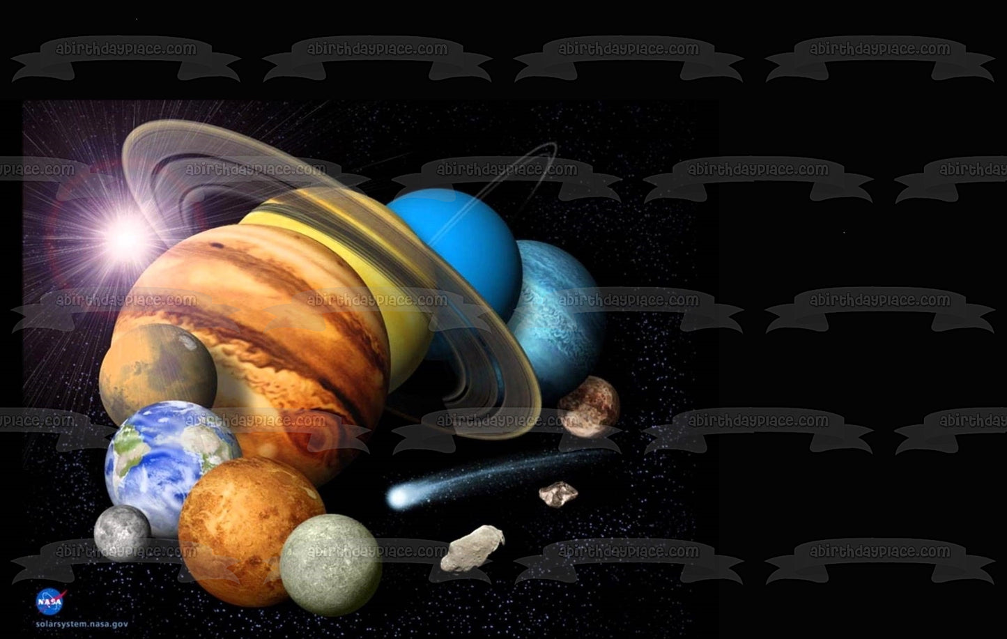 Solar System Planets Moon Earth Saturn Edible Cake Topper Image ABPID05377