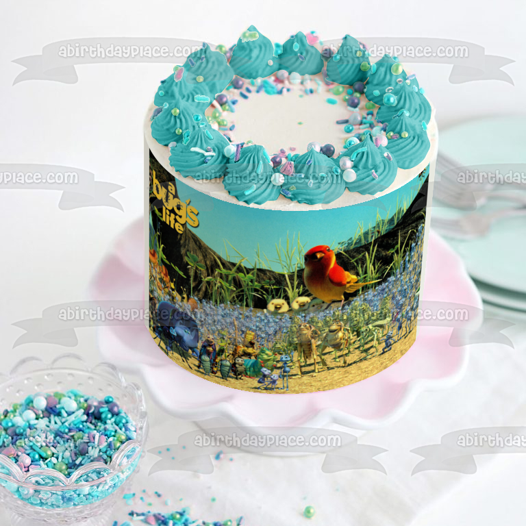 Celebrate your special event with this A Bugs Life themed Edible Cake Image Topper featuring Heimlich, Dim, Flik and Princess Atta!