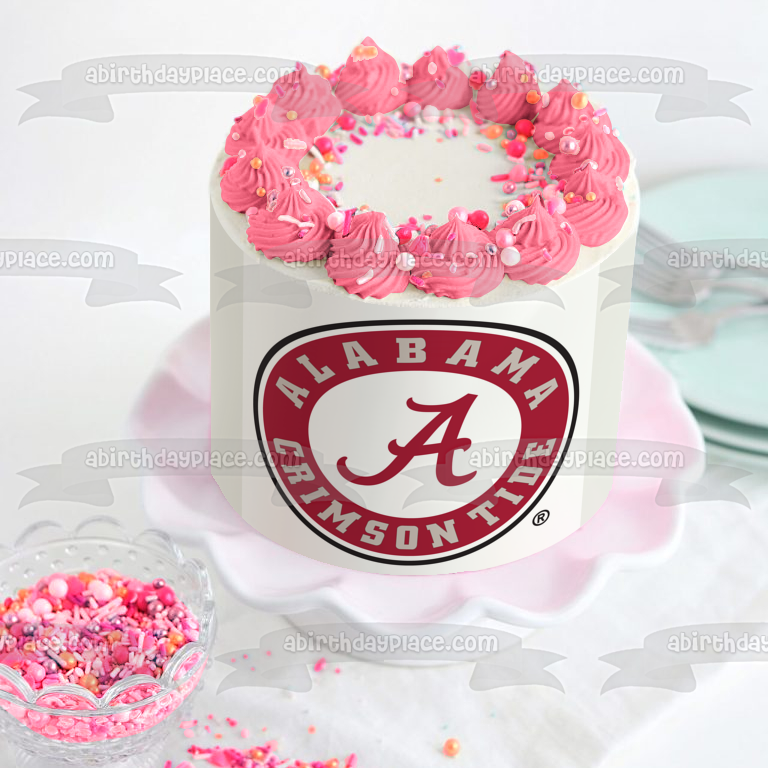 Celebrate your special occasion with this Alabama Crimson Tide themed Edible Cake Topper Image featuring the Logo!
