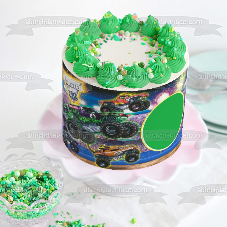 Personalize your cake with this Monster Jam themed Edible Cake Topper Image featuring Grave Digger, Maximum Destruction and 1/2 Pint!