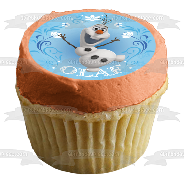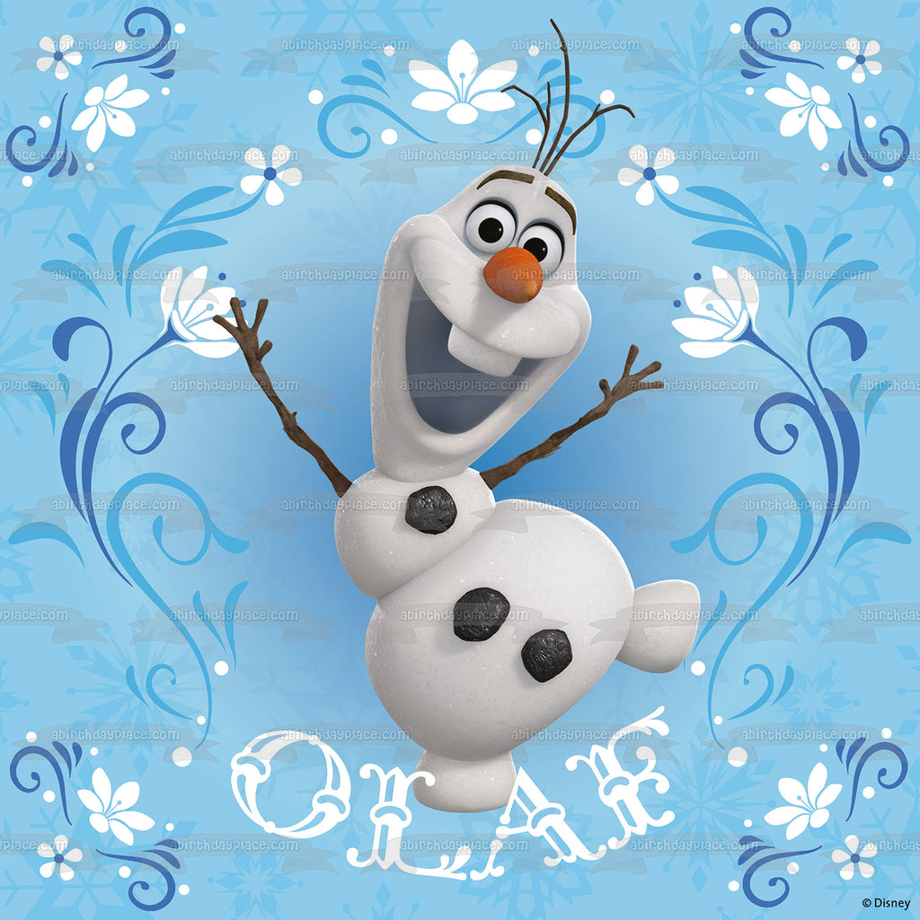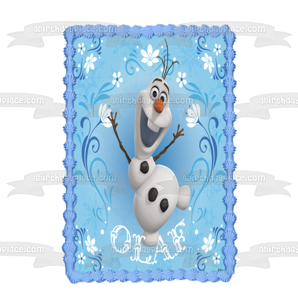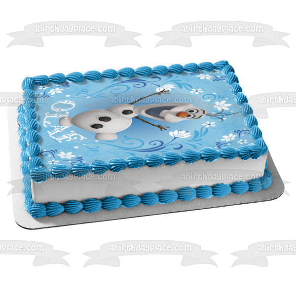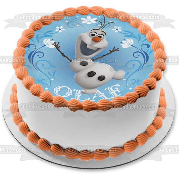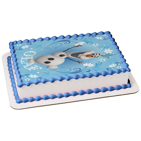Decorate your cake with this Frozen themed Edible Cake Topper Image featuring Olaf surrounded by White Flowers!