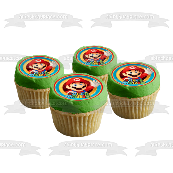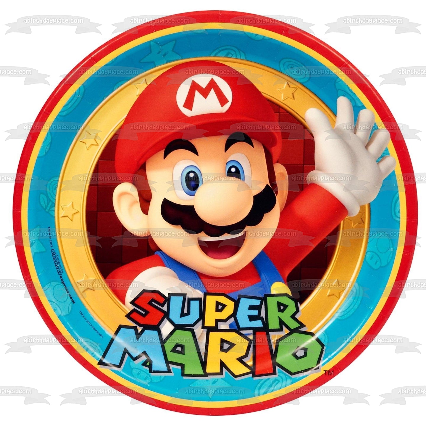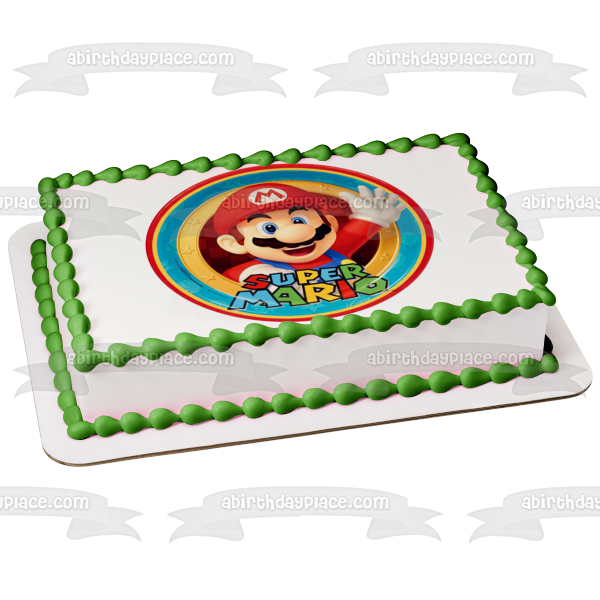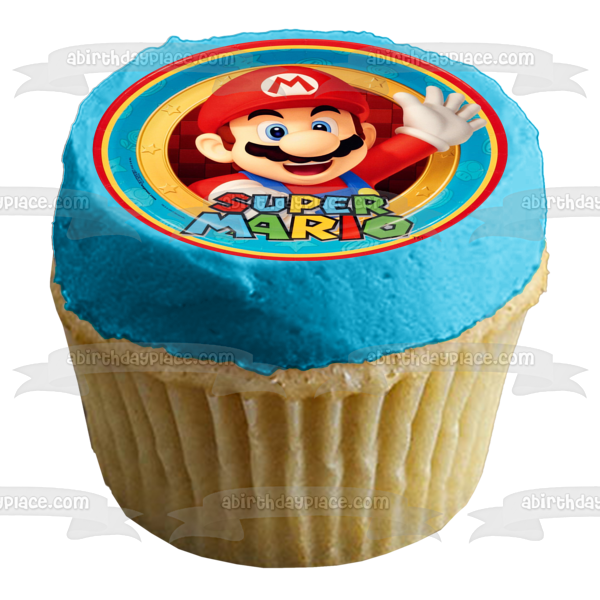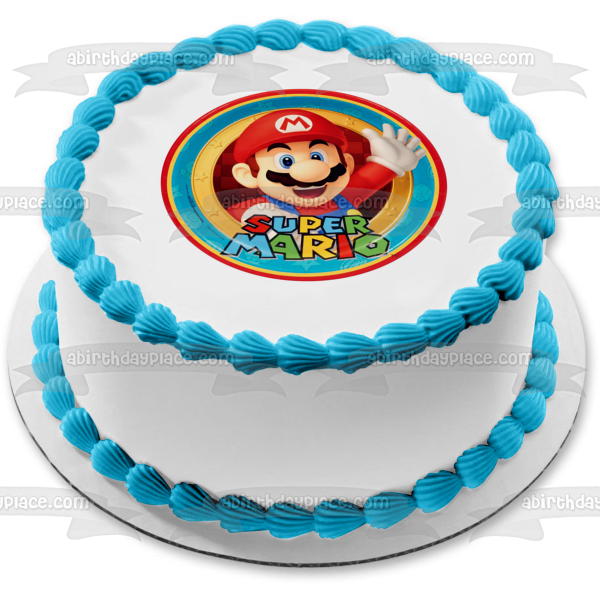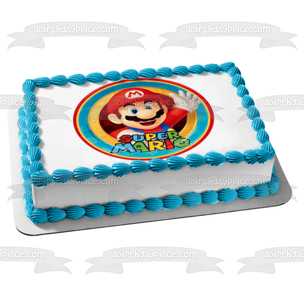 Decorate your Cake with this Super Mario themed Edible Cake Topper Image featuring a Stars Background!