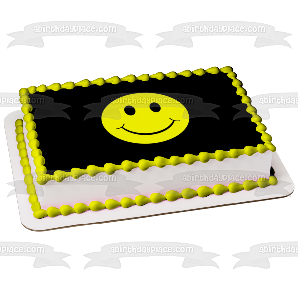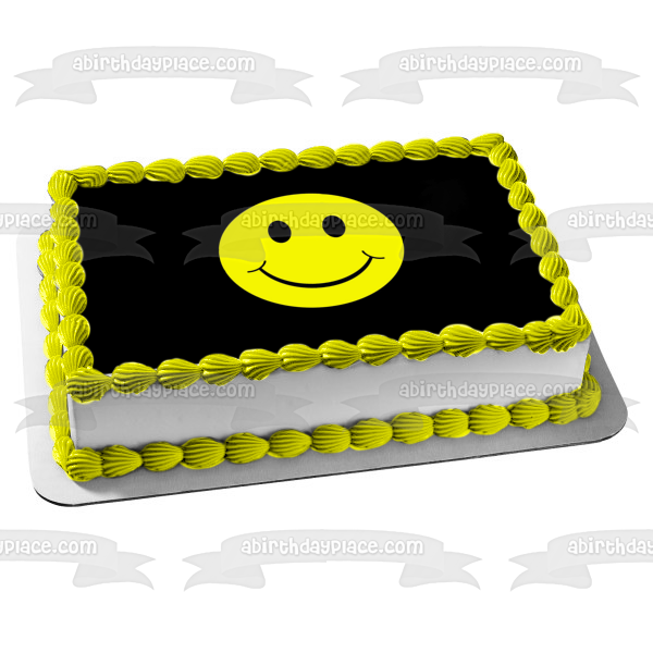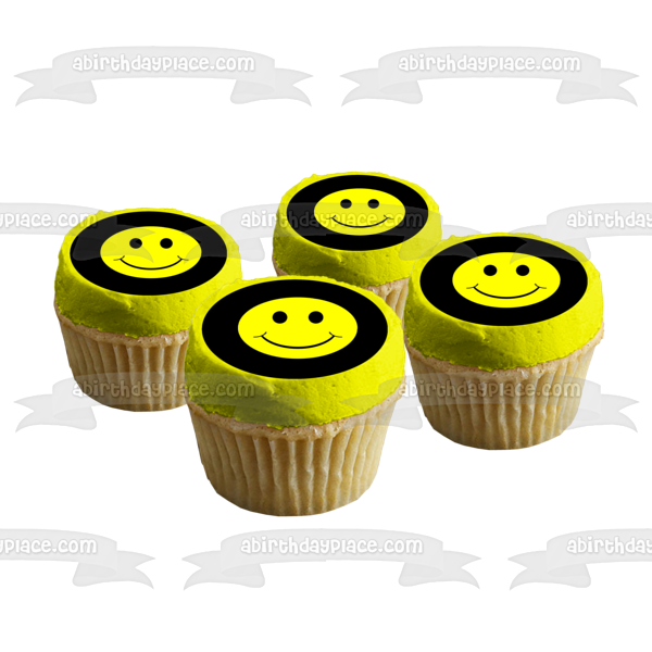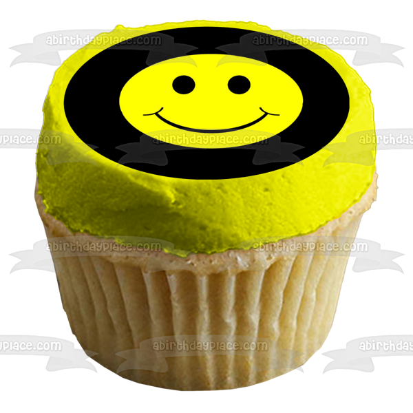 Emoji Smiley Face Black and Yellow Edible Cake Topper Image ABPID05594