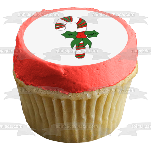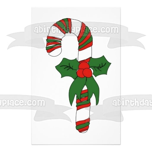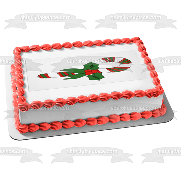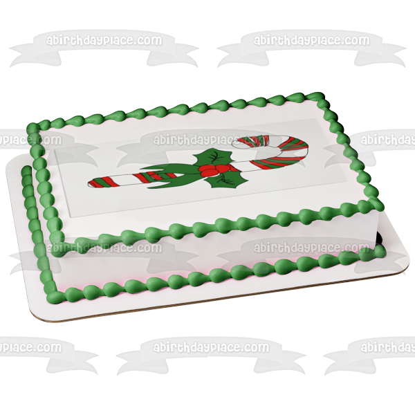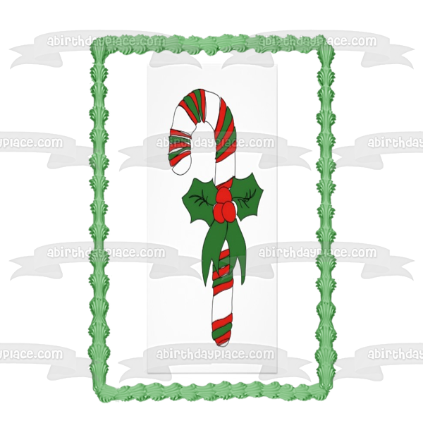 Celebrate your special occasion with this Merry Christmas themed Edible Cake Topper Image featuring a Red, White and Green Candy Cane with a Bow of Mistletoe!