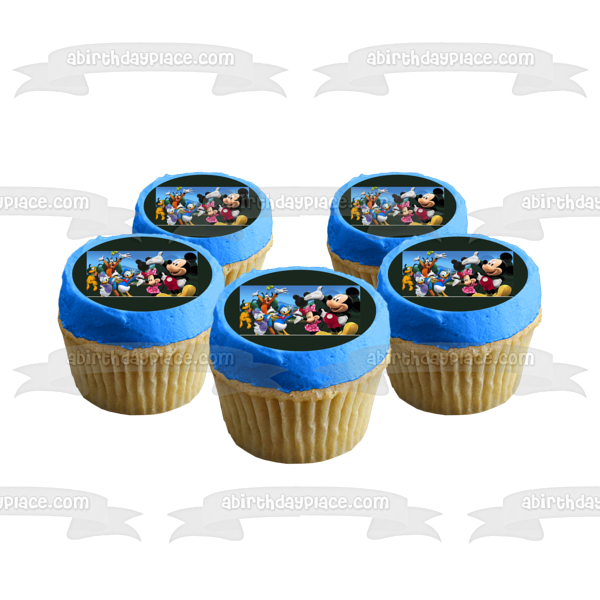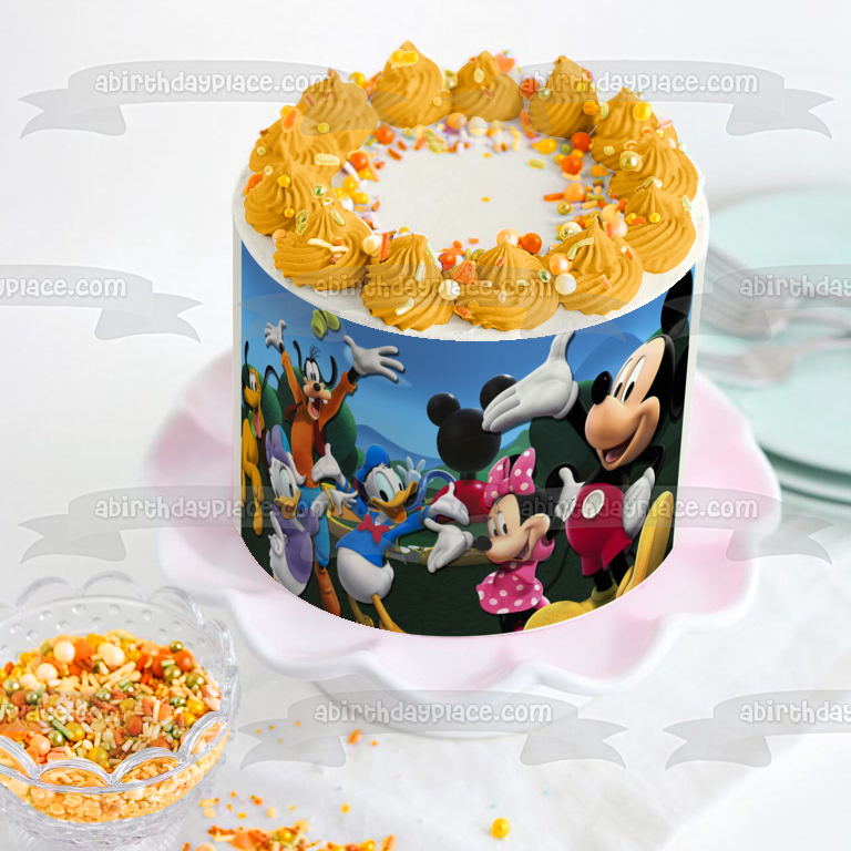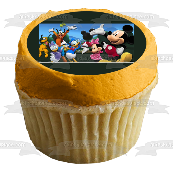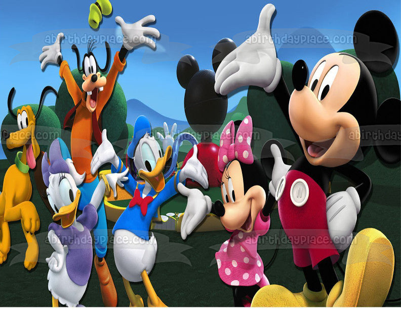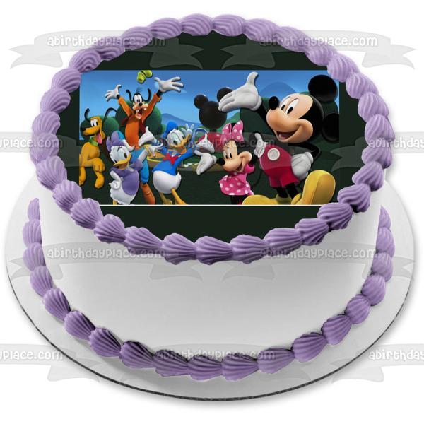 Celebrate your special day with this Mickey Mouse Clubhouse themed Edible Cake Topper Image featuring Minnie Mouse, Goofy, Pluto, Donald Duck and Daisy Duck!