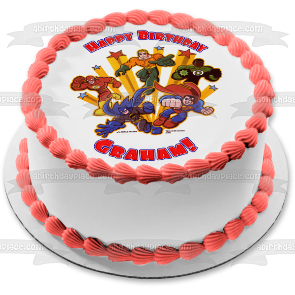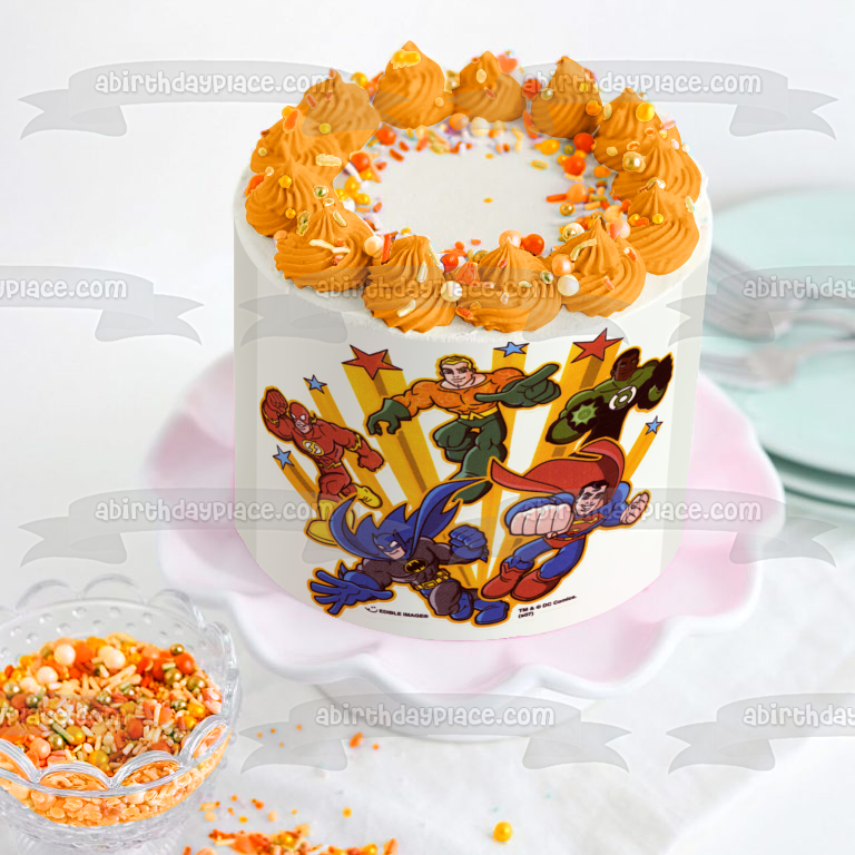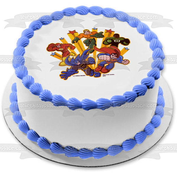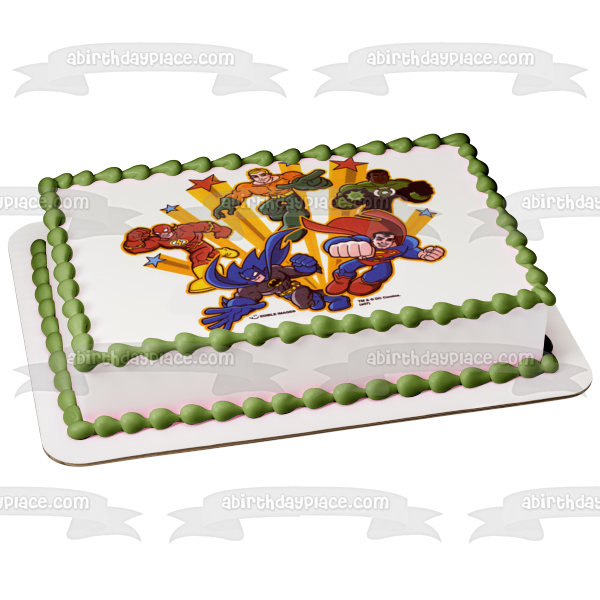 Celebrate your Super Friends enthusiast with this Edible Cake Topper Image featuring The Flash, Superman, Green Lantern, Batman and Robin!