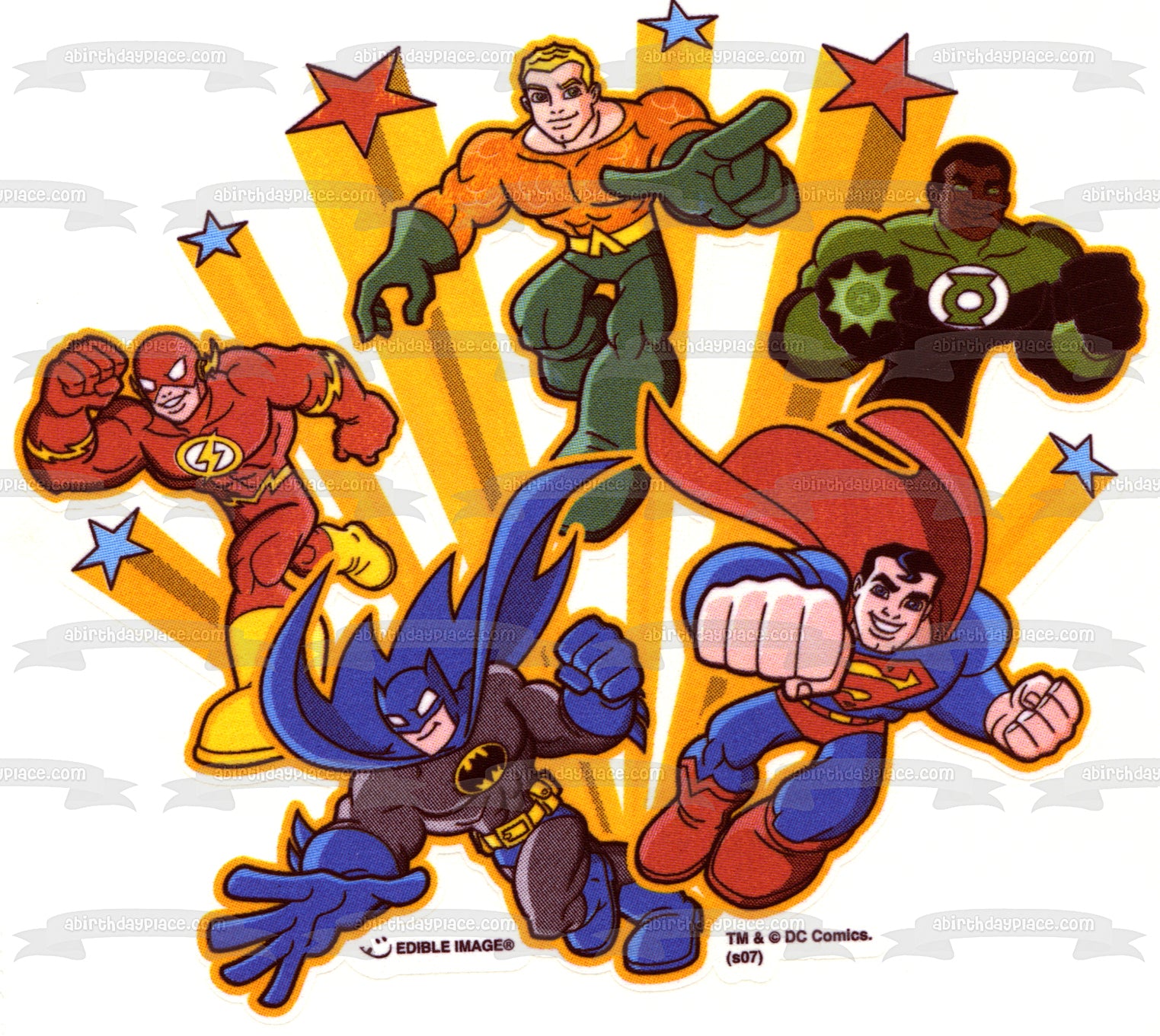 Super Friends the Flash Superman Batman Robin and Green Lantern Edible Cake Topper Image ABPID05888