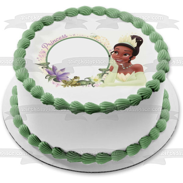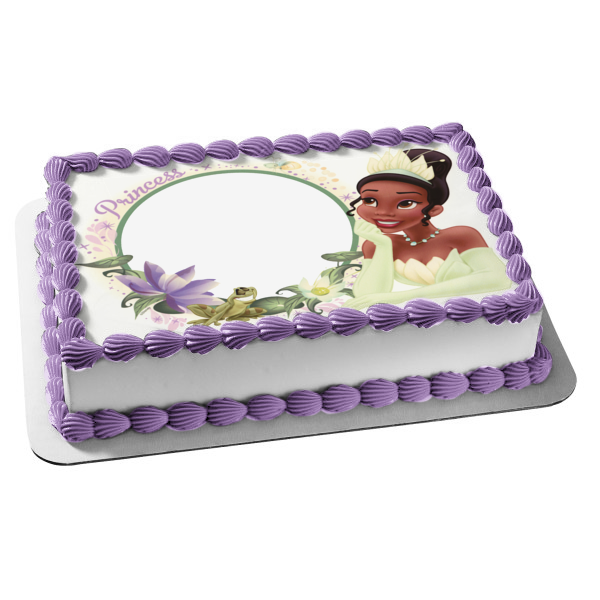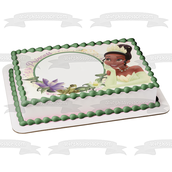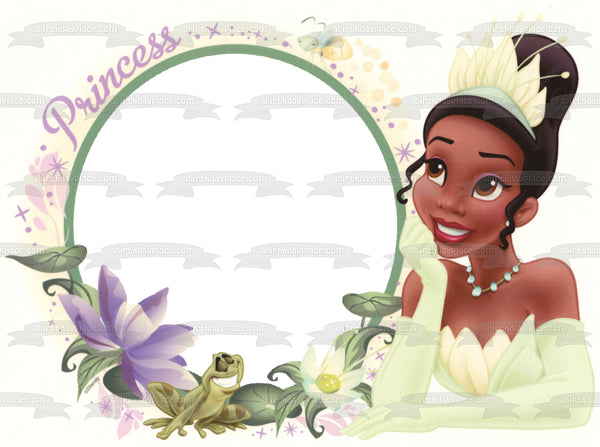 Princess Tiana Flowers and a Frog Edible Cake Topper Image Frame ABPID05923
