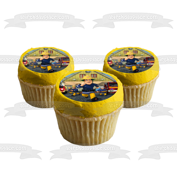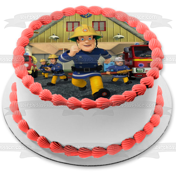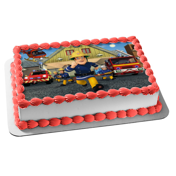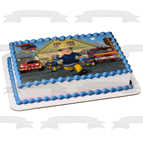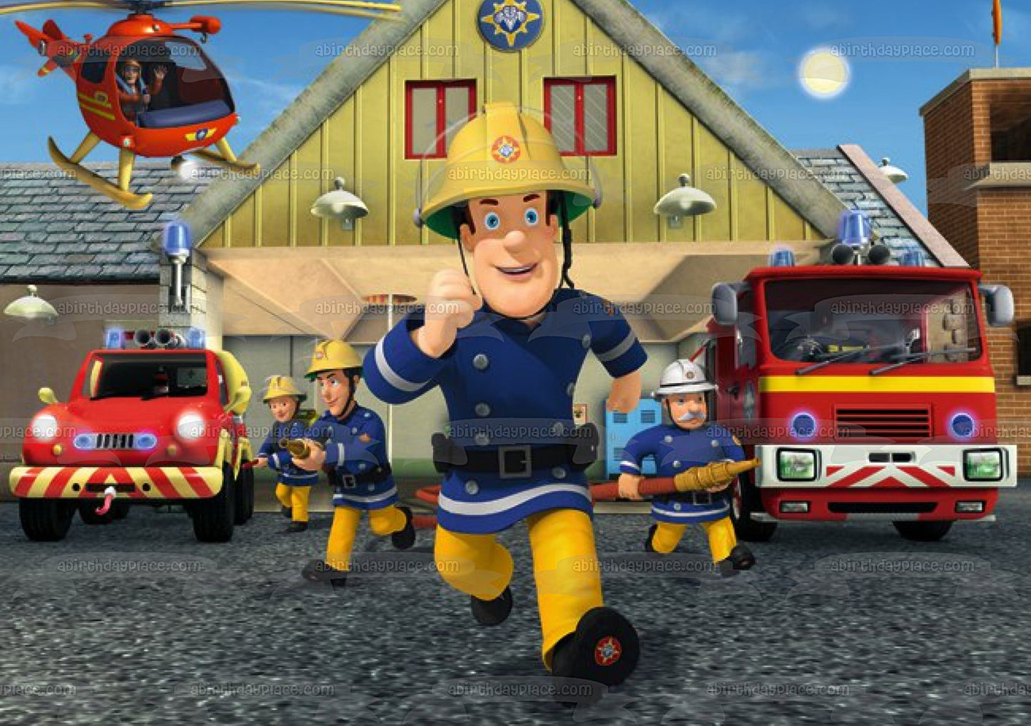 Decorate your cake with this Fireman Sam themed Edible Cake Topper Image featuring a Fire Truck, Helicopter, Station Officer Steele, Arnold McKinley and Elvis Cridington!