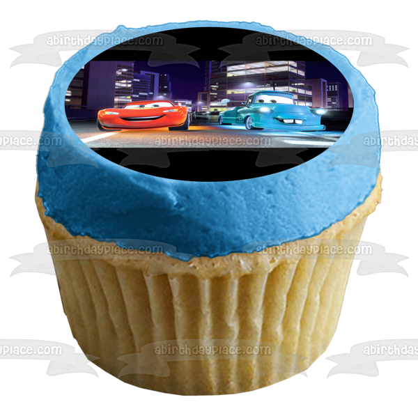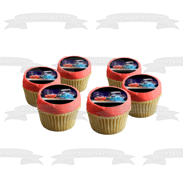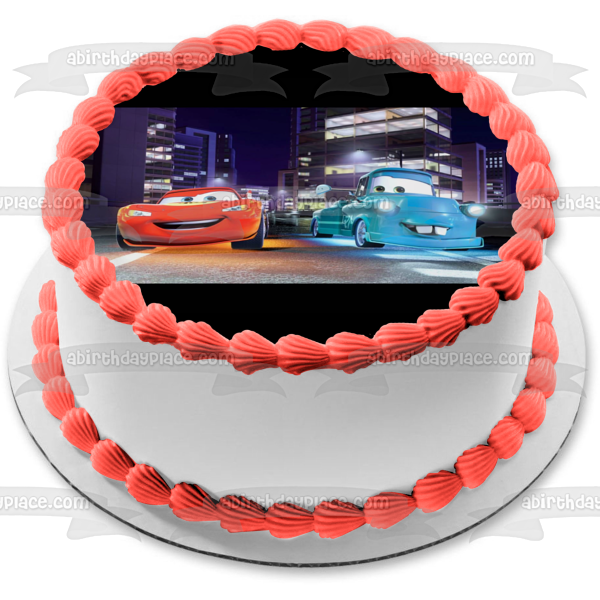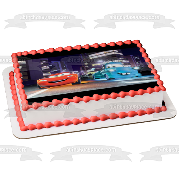 Decorate your cake with this Cars 2 themed Edible Cake Topper Image featuring Lightening McQueen and Guido!