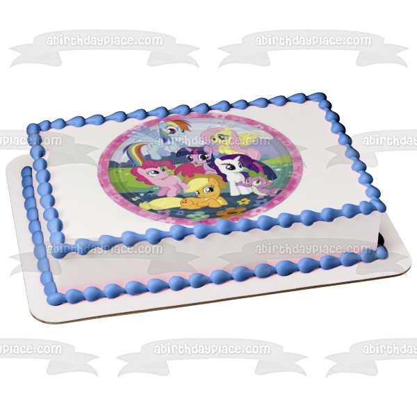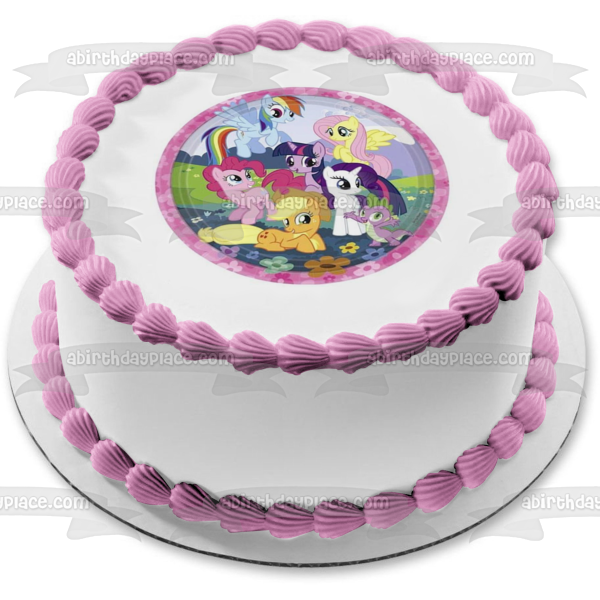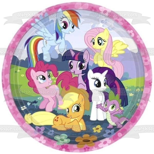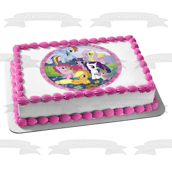 My Little Pony Equestria Girls Rainbow Dash Fluttershy Pinkie Pie and Flowers Edible Cake Topper Image ABPID06245