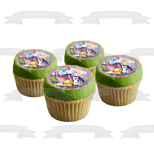 Celebrate your special day with this My Little Pony Equestria Girls themed Edible Cake Topper Image featuring Rainbow Dash, Fluttershy and Pinkie Pie!