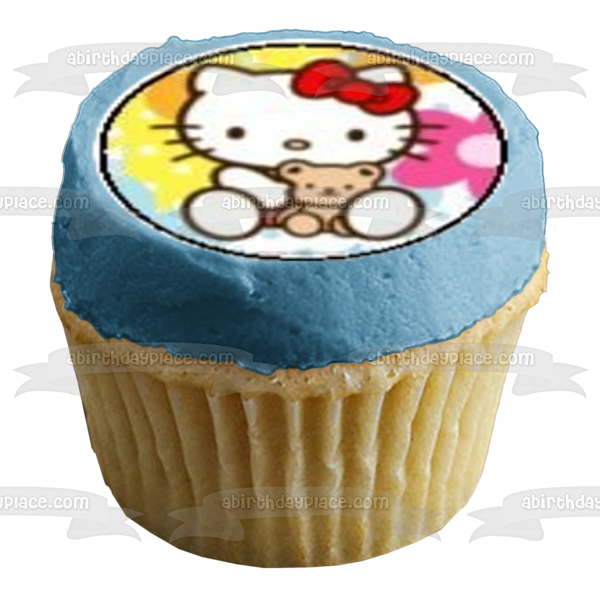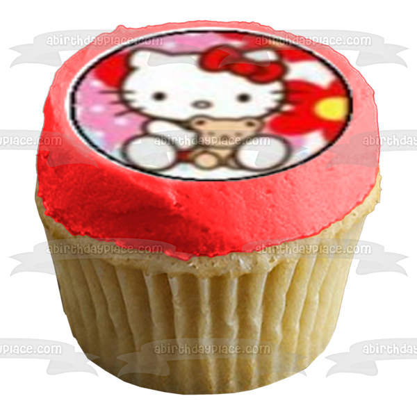 Hello Kitty Teddy Bear and Flowers Edible Cupcake Topper Images ABPID06269