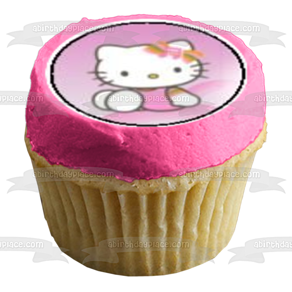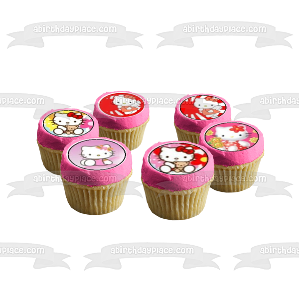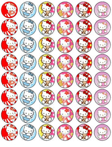 Celebrate your special occasion with these 48 Count Hello Kitty themed Edible Cupcake Topper Images featuring Hello Kitty with Different Outfits and Toys!