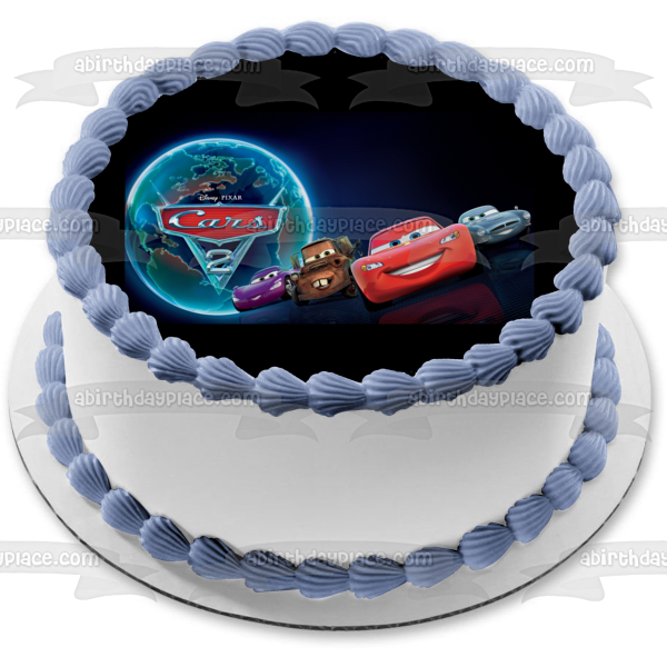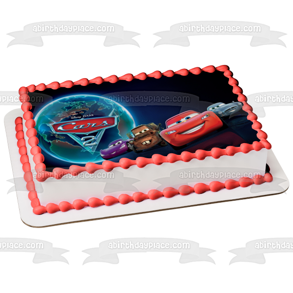 Celebrate your cars fan with this Edible Cake Topper Image featuring Lightening McQueen, Mater, Sally and Holley!