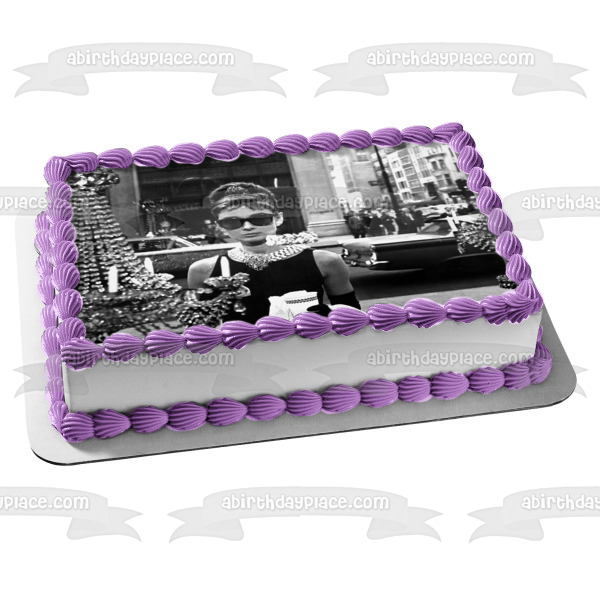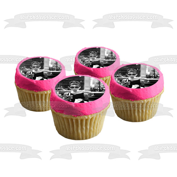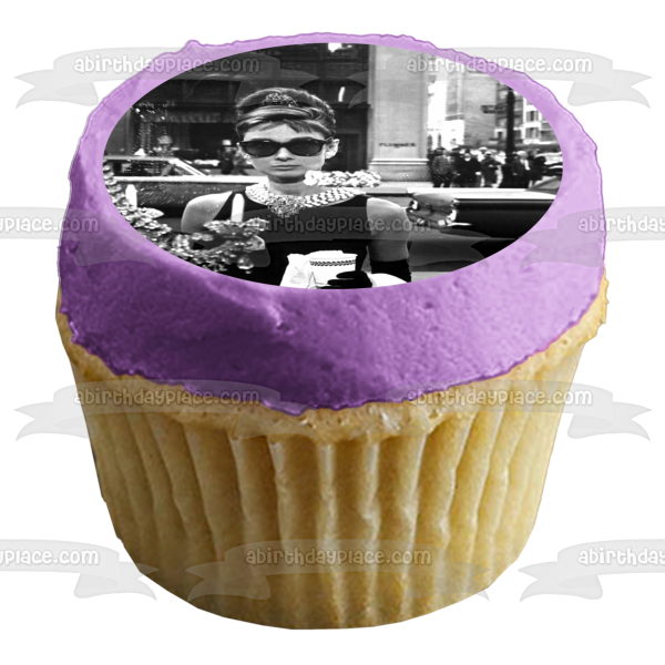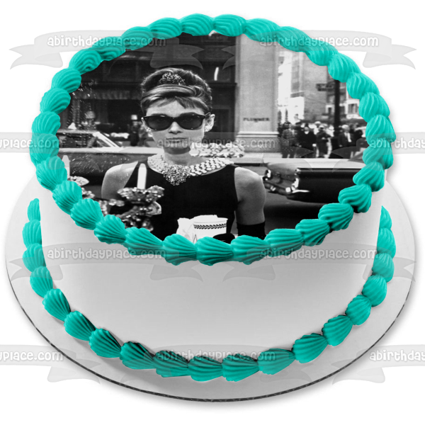 Decorate your cake with this Black and White Audry Hepburn themed Edible Cake Topper Image!