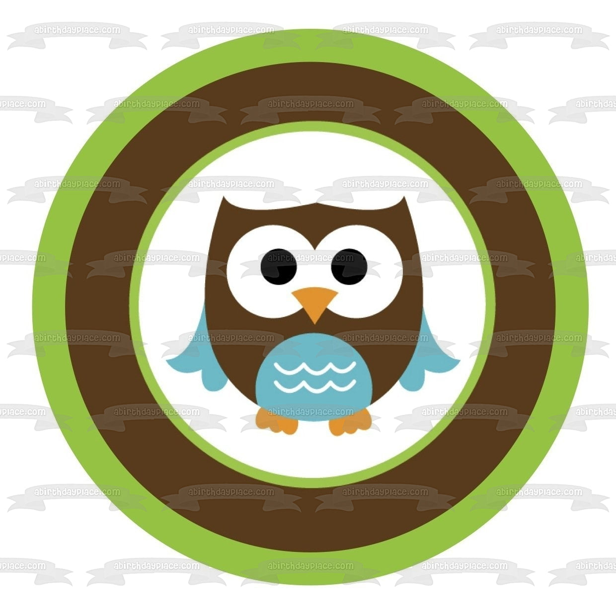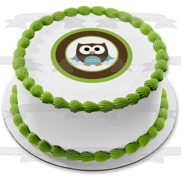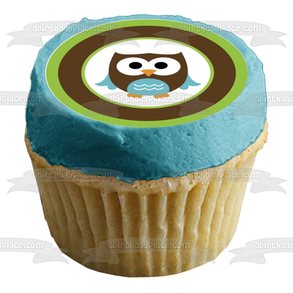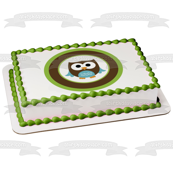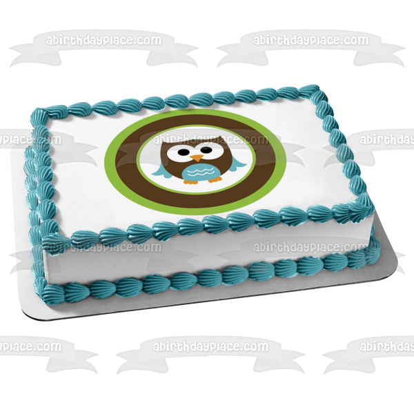 Celebrate your special day with this Brown and Blue Baby Owl themed Edible Cake Topper Image!