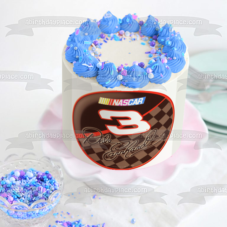 Celebrate your Nascar fan with this Edible Cake Topper Image featuring Dale Earnhardt 3 Logo with his Signature!