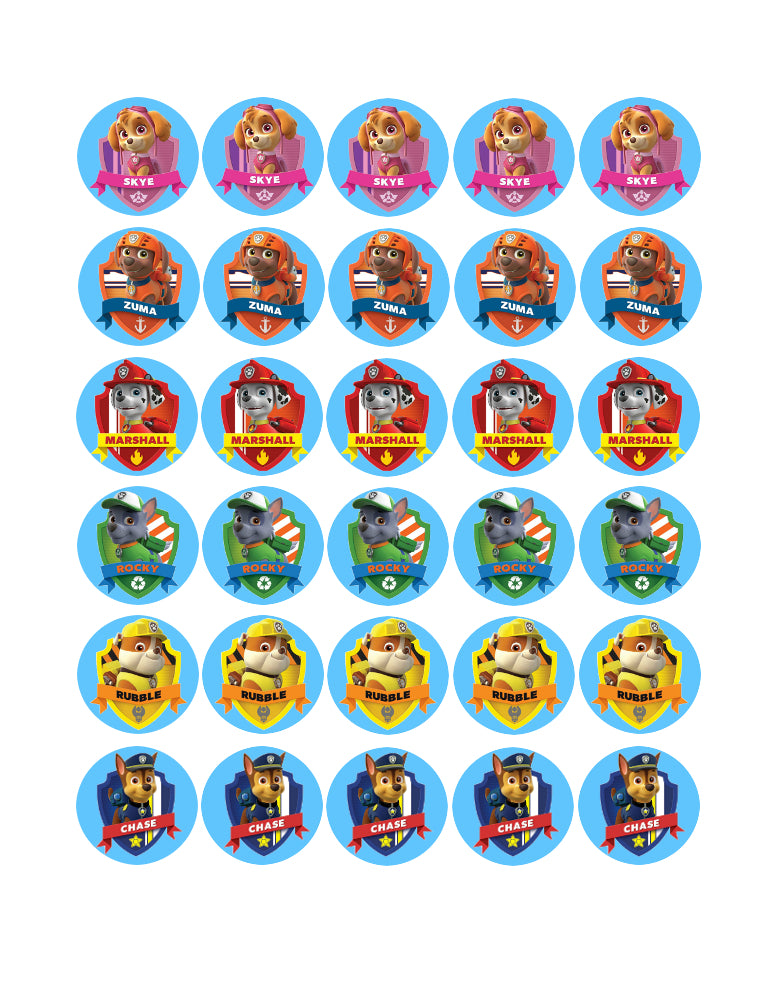 Paw Patrol Chase Everest Tracker Skye Zuma Marshall Rocky Ryder and Rubble Edible Cupcake Topper Images ABPID06393