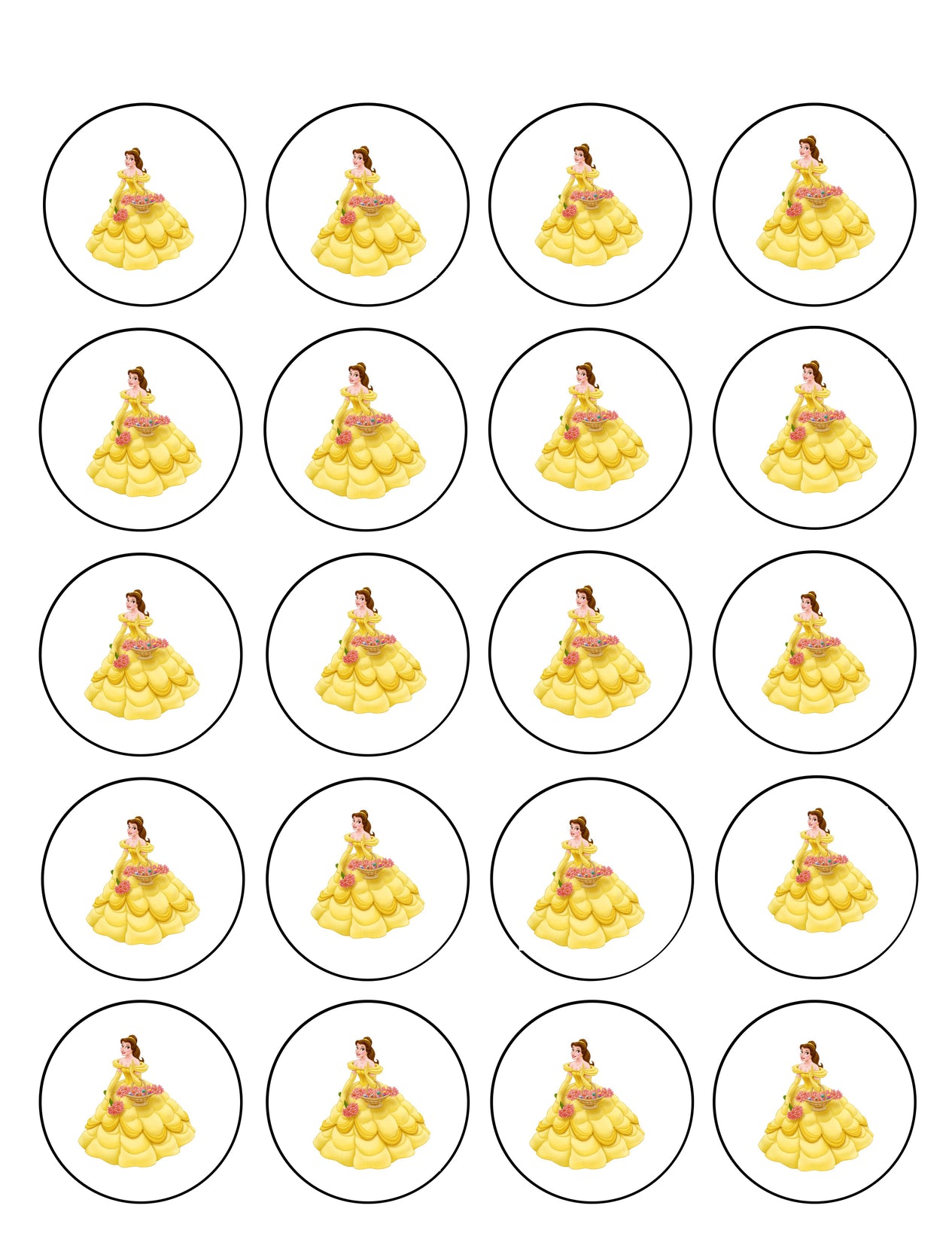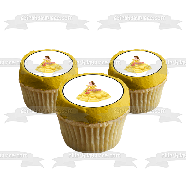 Celebrate your special day with these 24 Count Princess themed Edible Cupcake Topper Images featuring Beauty and the Beast's Belle!