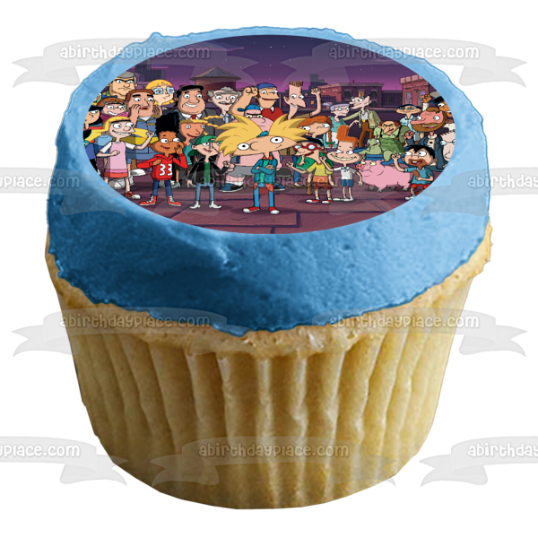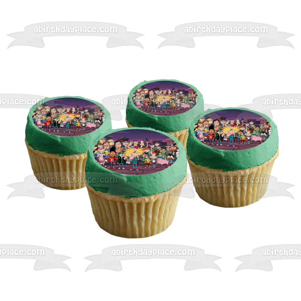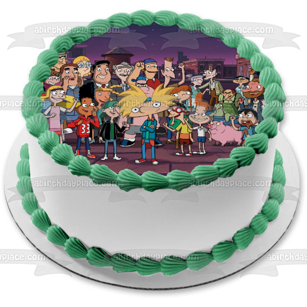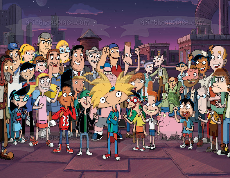 Celebrate your Hey Arnold fan with this Edible Cake Topper Image featuring Gerald, Helga, Phoebe and Harold!