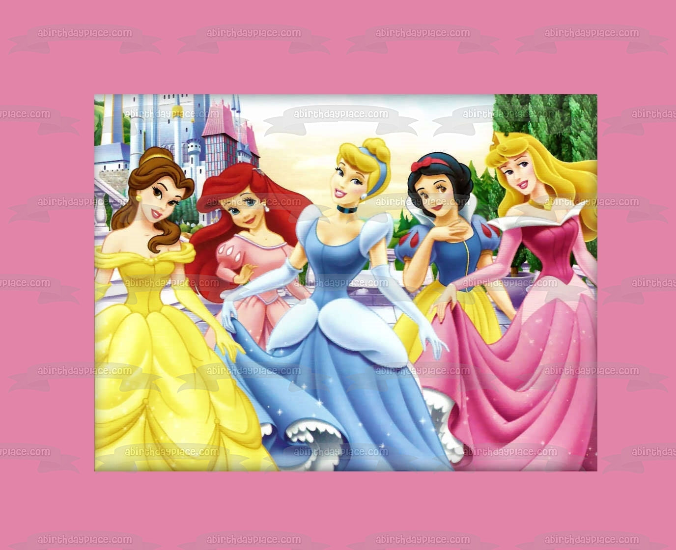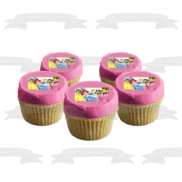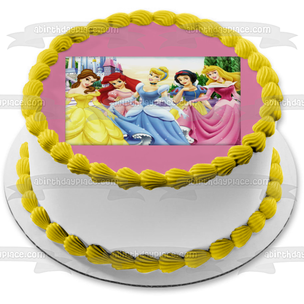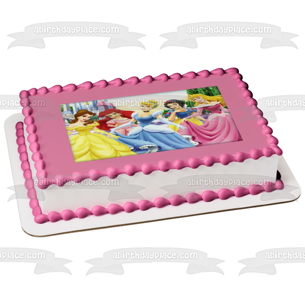 Celebrate your Princesses fanatic with this Edible Cake Topper Image featuring Belle, Ariel, Cinderella, Snow White and Aurora!