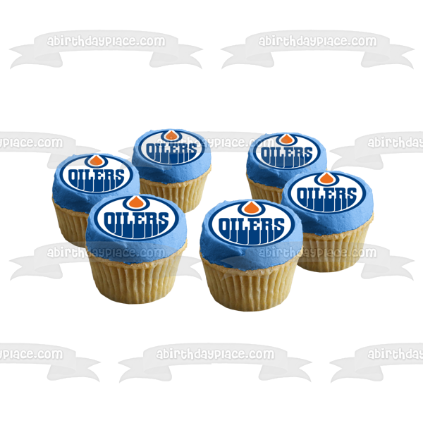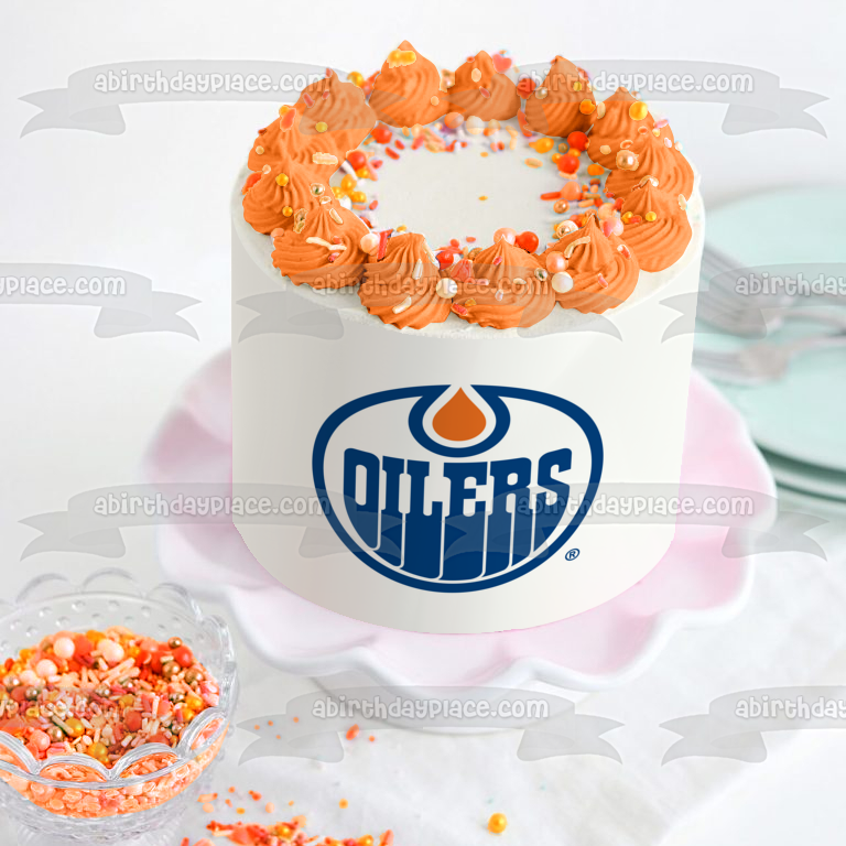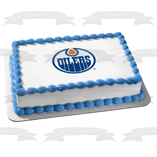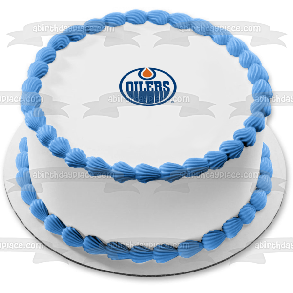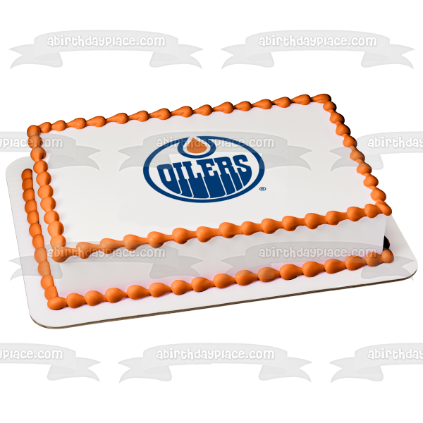 Decorate your cake with this NHL themed Edible Cake Topper Image featuring the Edmonton Oilers Logo!