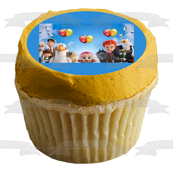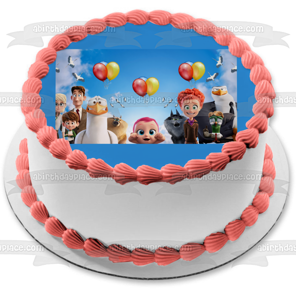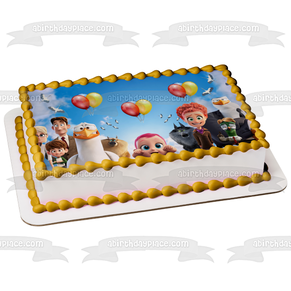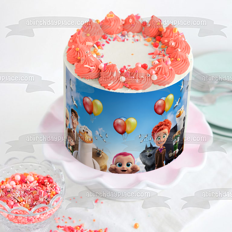 Decorate your Cake with this Storks themed ectif Junior, the Baby, Tulip, Pigeon Toady, the Wolf Pack and Balloons!