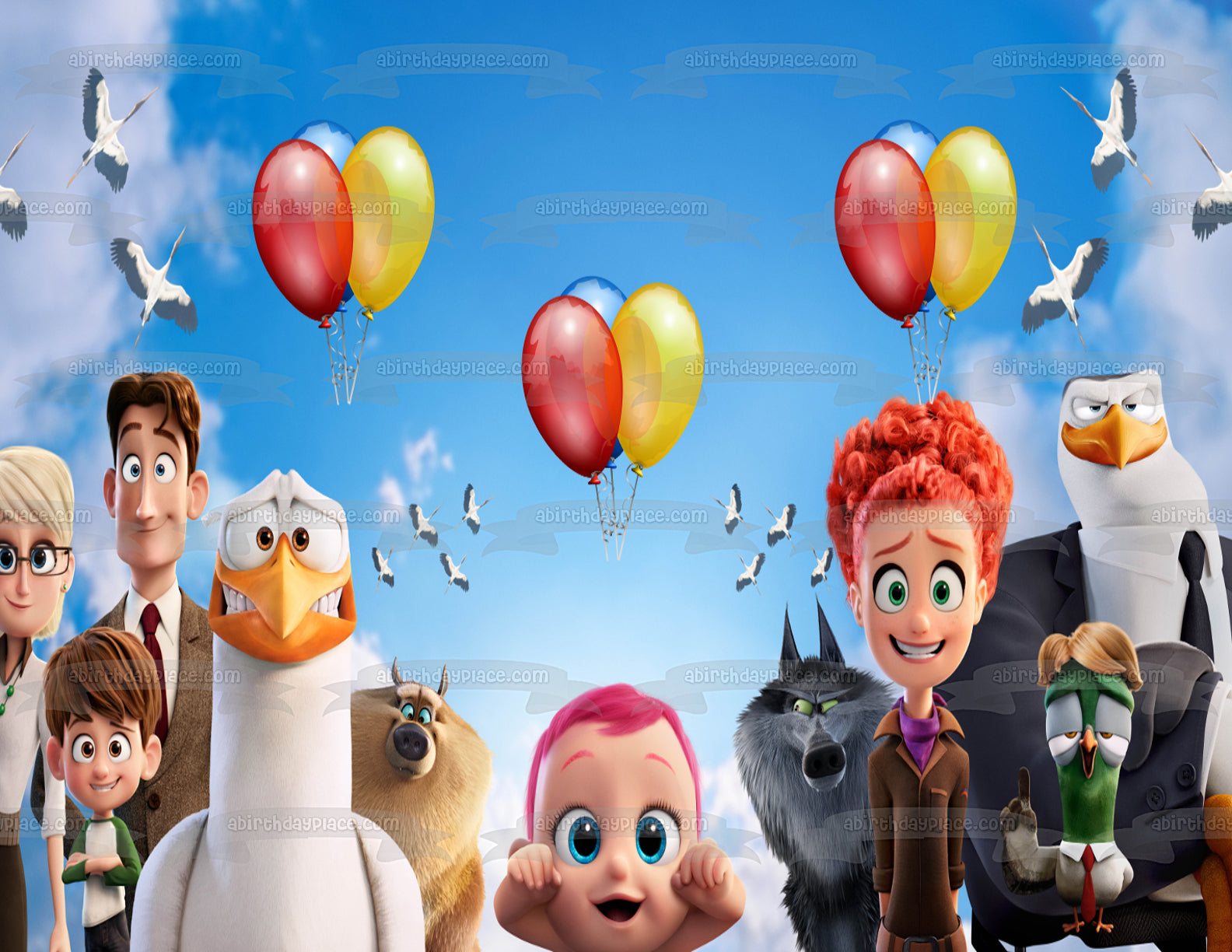 Storks Tulip Junior the Baby Pigeon Toady Wolf Pack and Balloons Edible Cake Topper Image ABPID06502